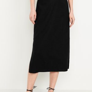 Mid-Rise Linen-Blend Midi Skirt: elasticized back waist, hidden left side zipper, side slits, easy pull-on style, #705483