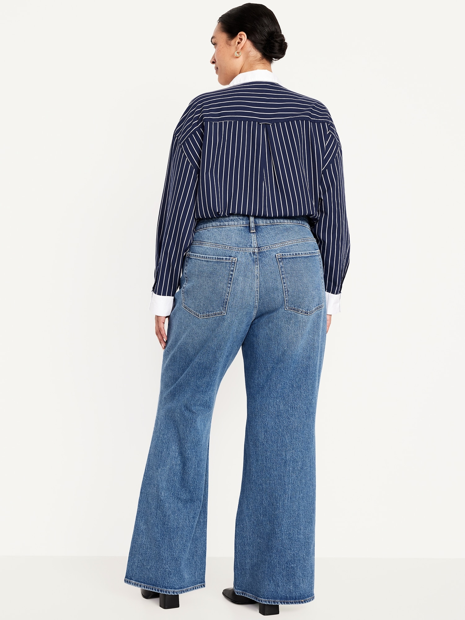 Mid-Rise Loose Boot-Cut Jeans: mid-rise waist, zip fly, boot-cut leg, #841305