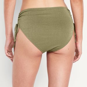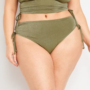 Mid-Rise Side-Tie Shine Bikini Swim Bottoms