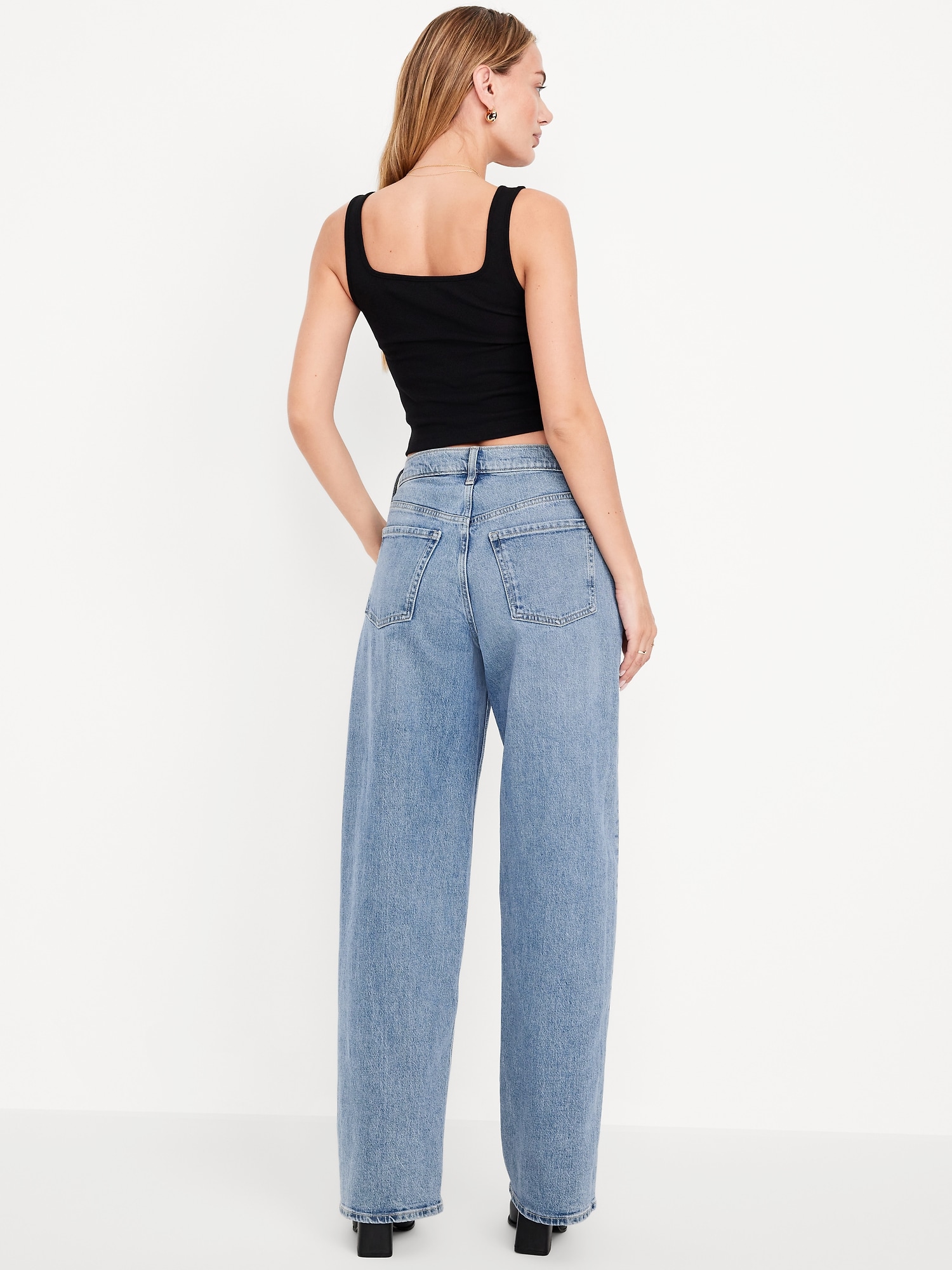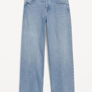 Mid-Rise Slouchy Wide-Leg Jeans: Low-slung and laid back with a long silhouette.mid-rise waist that’s low slung on the hips, hidden button fly, wide leg puddles at hem, #805772