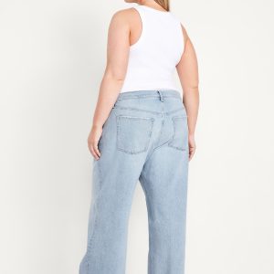 Mid-Rise Slouchy Wide-Leg Jeans: Low-slung and laid back with a long silhouette.mid-rise waist that’s low slung on the hips, hidden button fly, wide leg puddles at hem, #805772