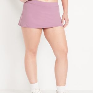 Mid-Rise StudioSmooth Mini Skort: Featuring StudioSmooth. Buttery soft and breathable, with a barely-there feel.mid-rise waistband, built-in biker shorts, go-dry wicks moisture, breathable, vented sides, #824389