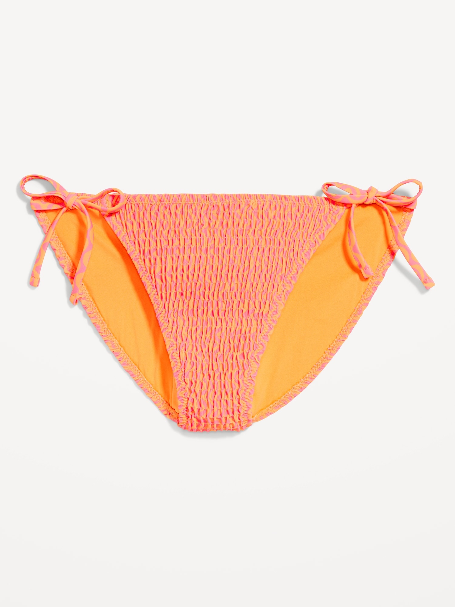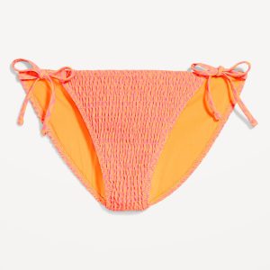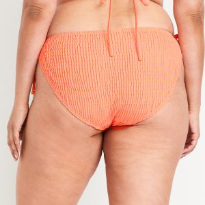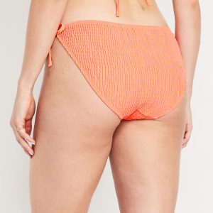 Mid-Rise Textured String Bikini Swim Bottoms: side ties, elastic waist, elastic leg openings, #864987