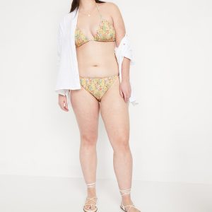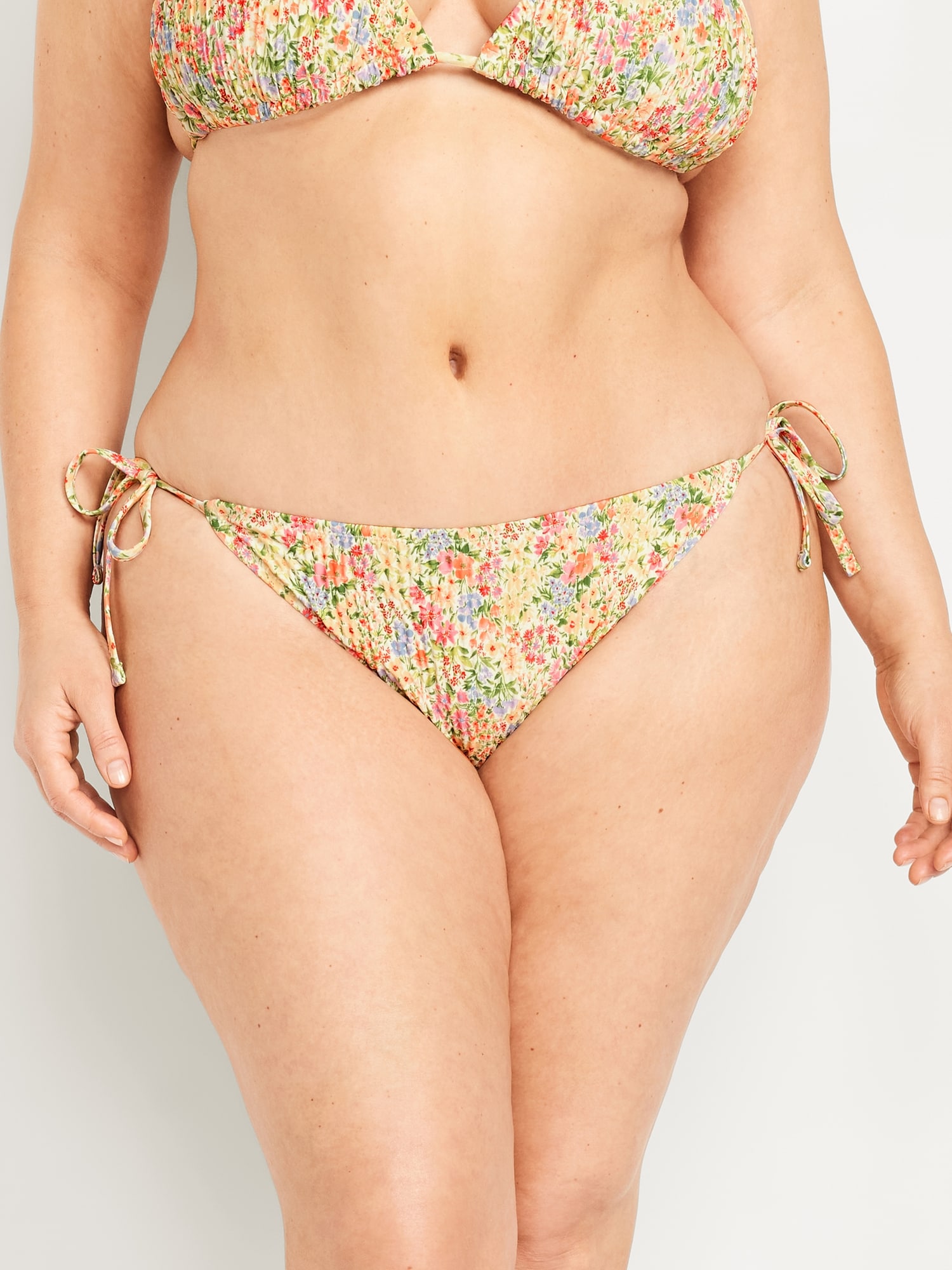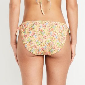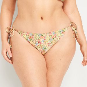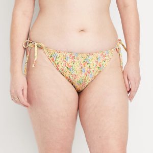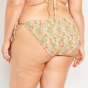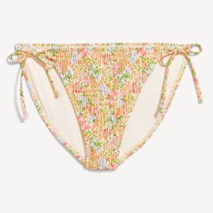Mid-Rise Textured String Bikini Swim Bottoms: side ties, elastic waist, elastic leg openings, #864987