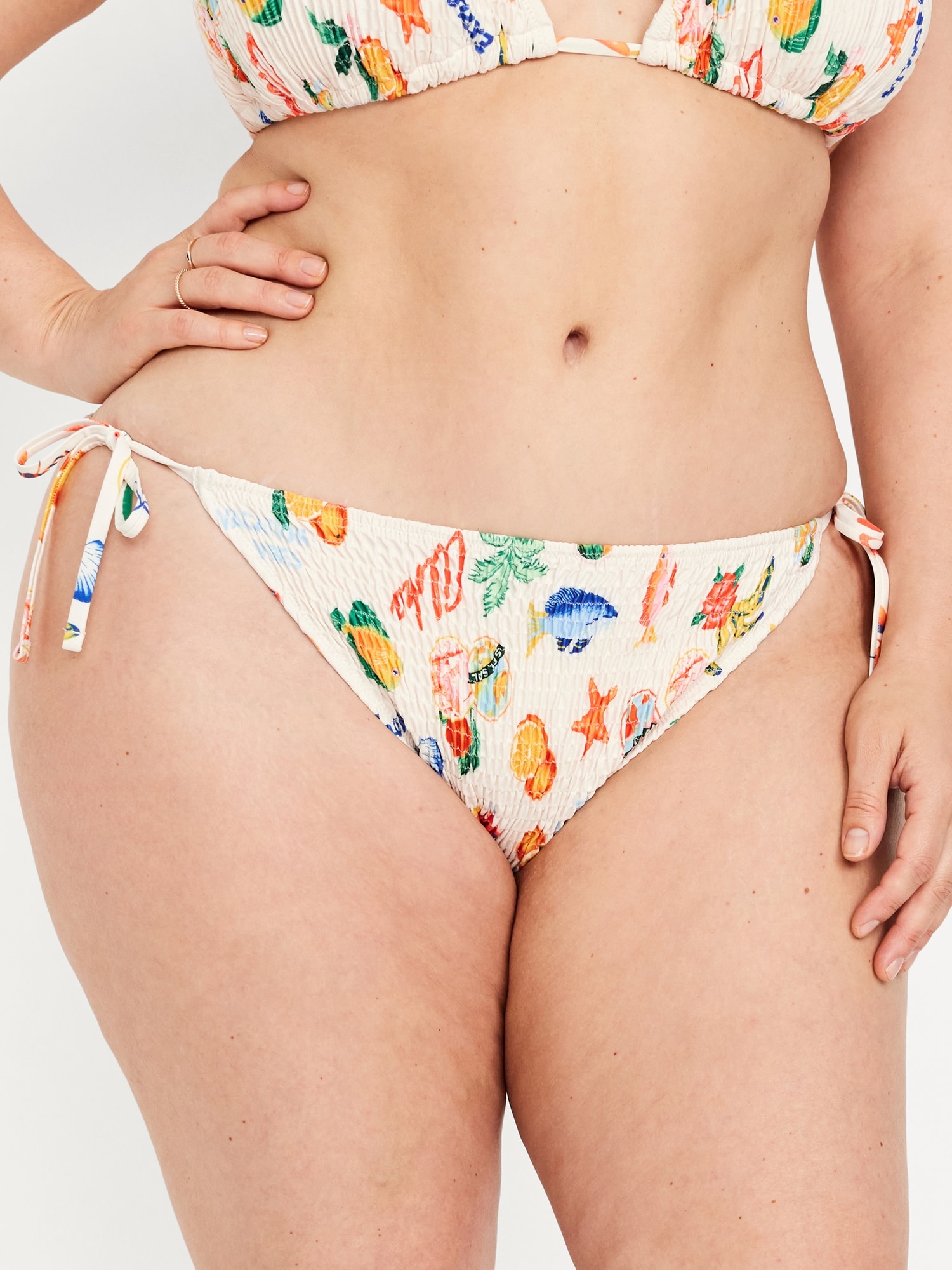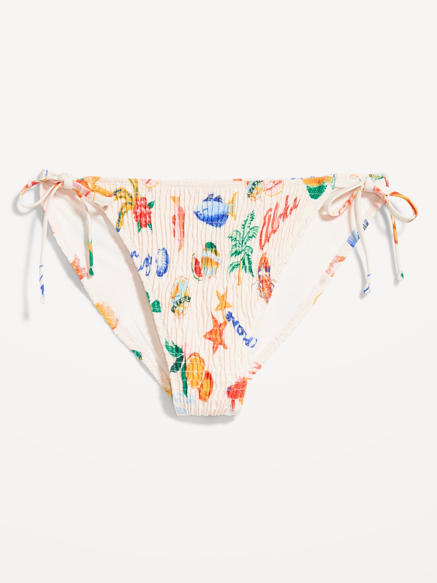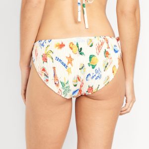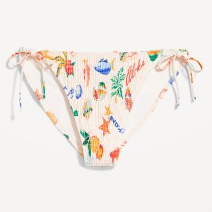 Mid-Rise Textured String Bikini Swim Bottoms: side ties, elastic waist, elastic leg openings, #864987