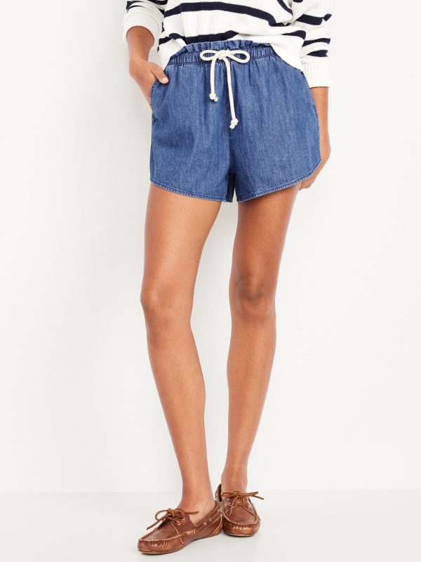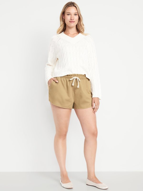 Mid-Rise Twill Volume Shorts: mid-rise elastic-drawstring waist, diagonal hip pockets, #844572