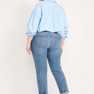 Mid-Rise Wow Boyfriend Straight Jeans: A slouchy straight leg at a jaw-dropping price.mid-rise waist, button front, belt loops, zip fly, front scoop pockets, back patch pockets, straight leg, cuffs can be rolled for boyfriend styling, #732591