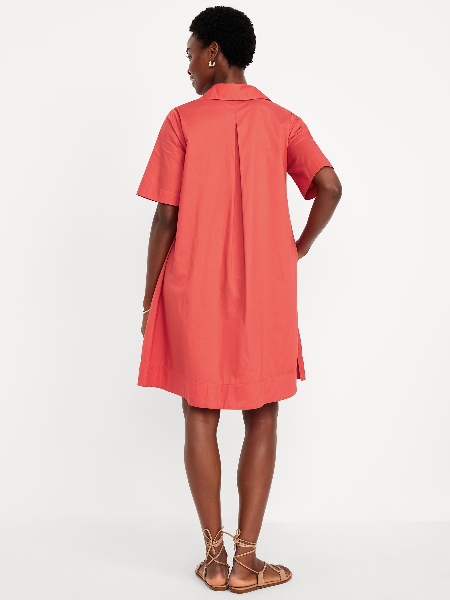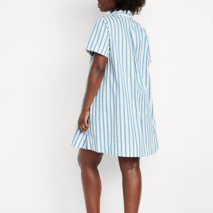 Mini Swing Shirt Dress: spread collar, elbow-length sleeves, covered button placket, vertical striped print, vented sides, #705705