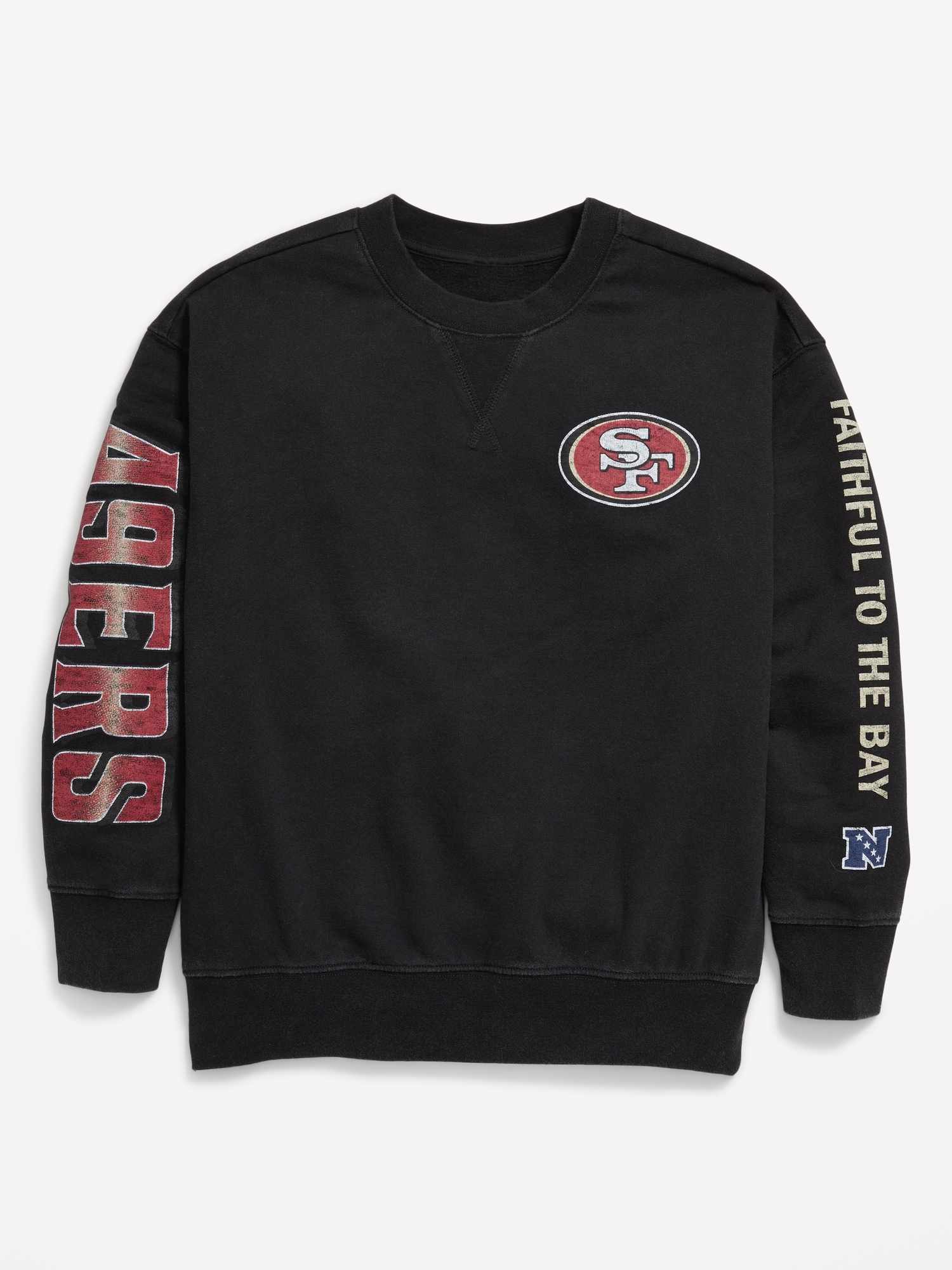 NFL™ San Francisco 49ers™ Oversized Sweater for Boys: crew neck, long sleeves, drop shoulders, licensed graphic, © 2025 NFL Enterprises LLC. NFL and the NFL shield design are registered trademarks of the National Football League., #805525