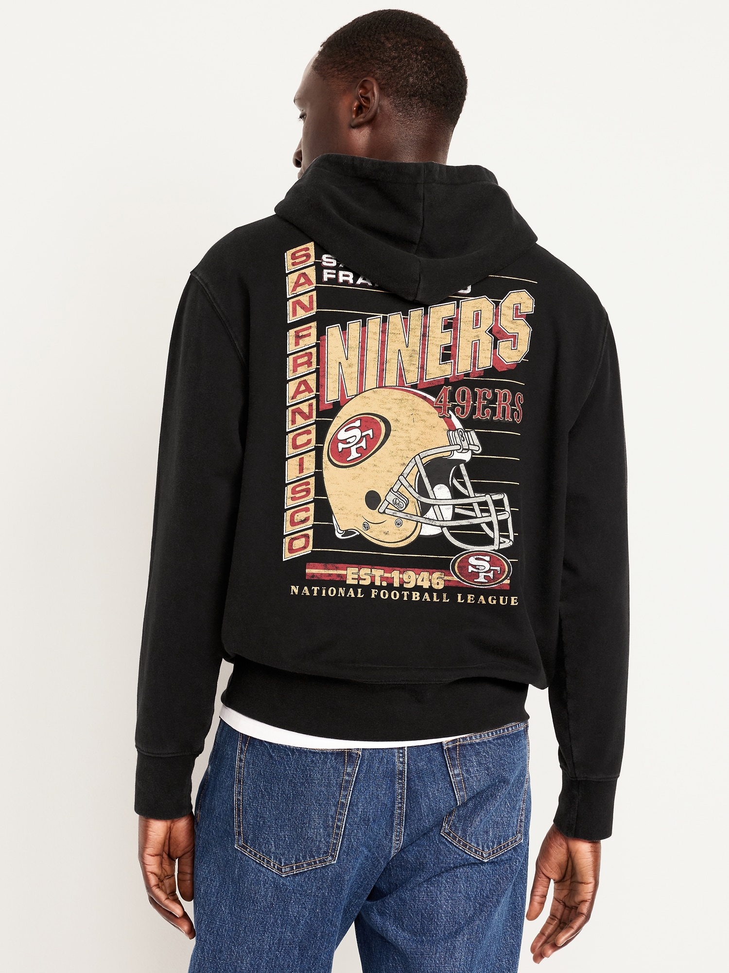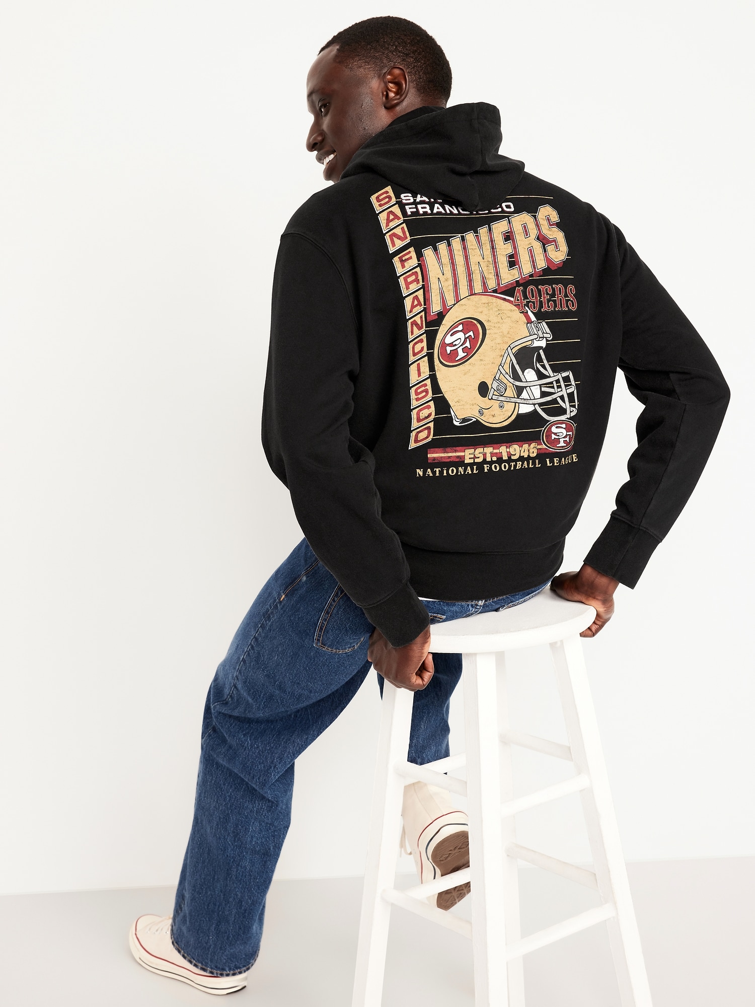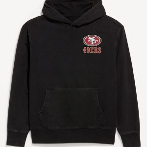 NFL™ San Francisco 49ers™ Pullover Hoodie: built-in hood, long sleeves, licensed graphic, kangaroo pocket, pullover style, © 2025 NFL Enterprises LLC. NFL and the NFL shield design are registered trademarks of the National Football League., #810917
