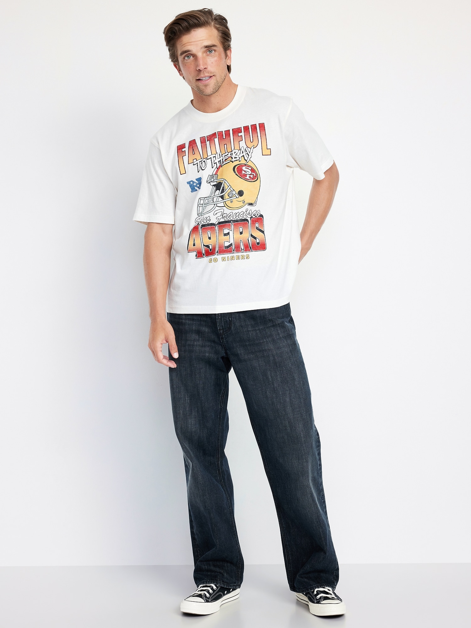 NFL™ San Francisco 49ers™ T-Shirt: rib-knit crew neck, short sleeves, licensed graphic, © 2025 NFL Enterprises LLC. The team names, logos and uniform designs are registered trademarks of the teams indicated. All other NFL-related trademarks are trademarks of the National Football League., #751533
