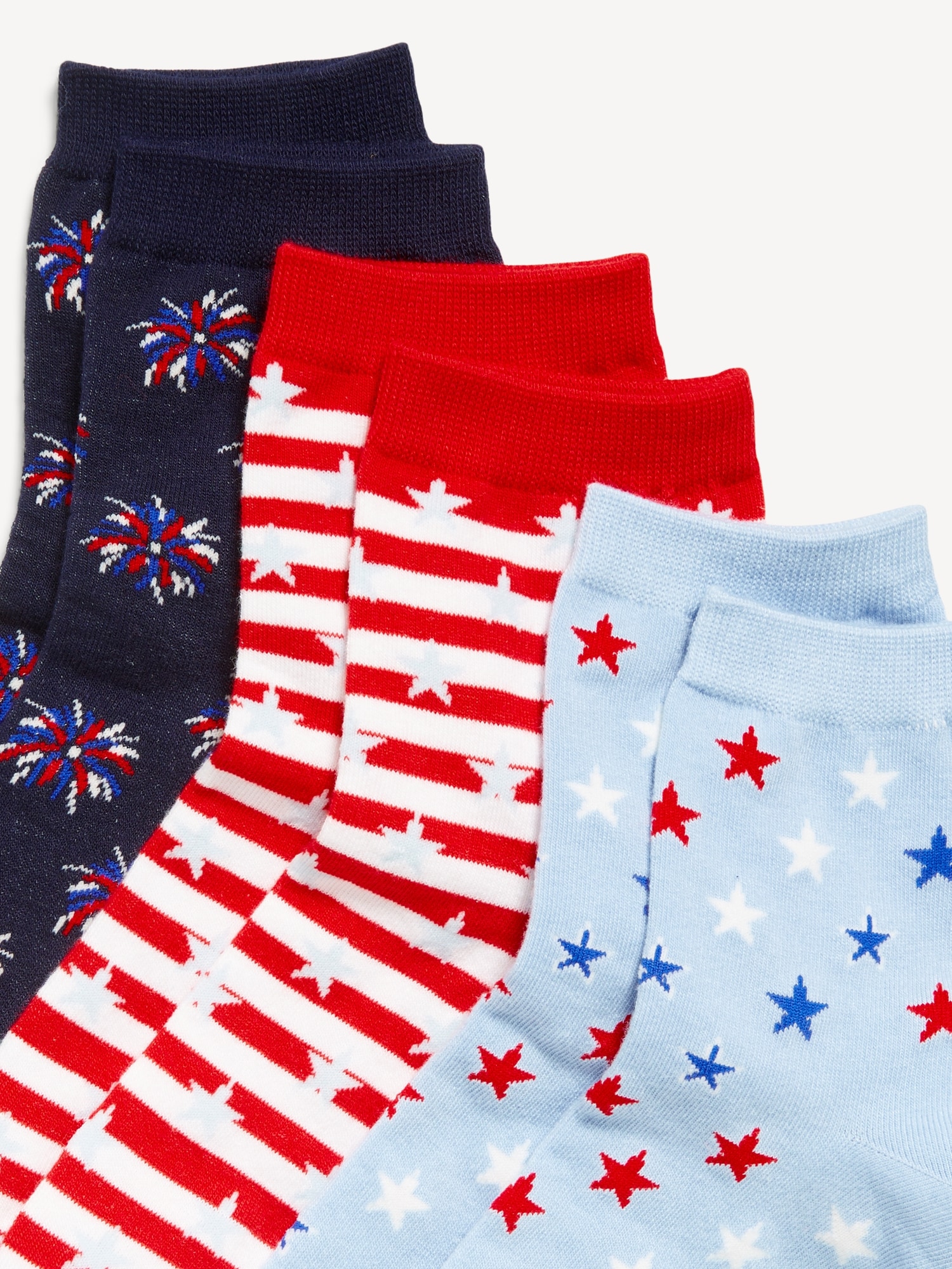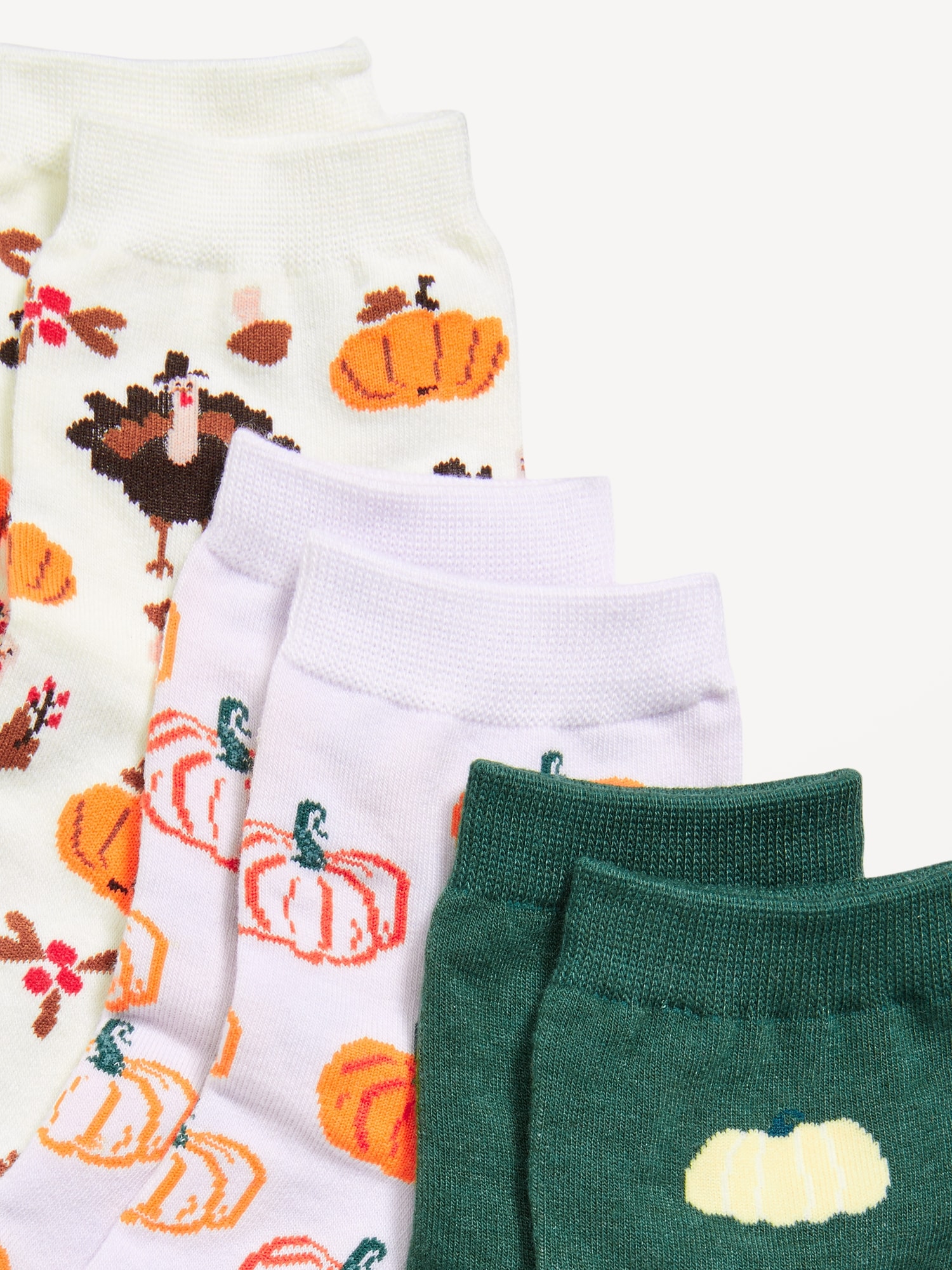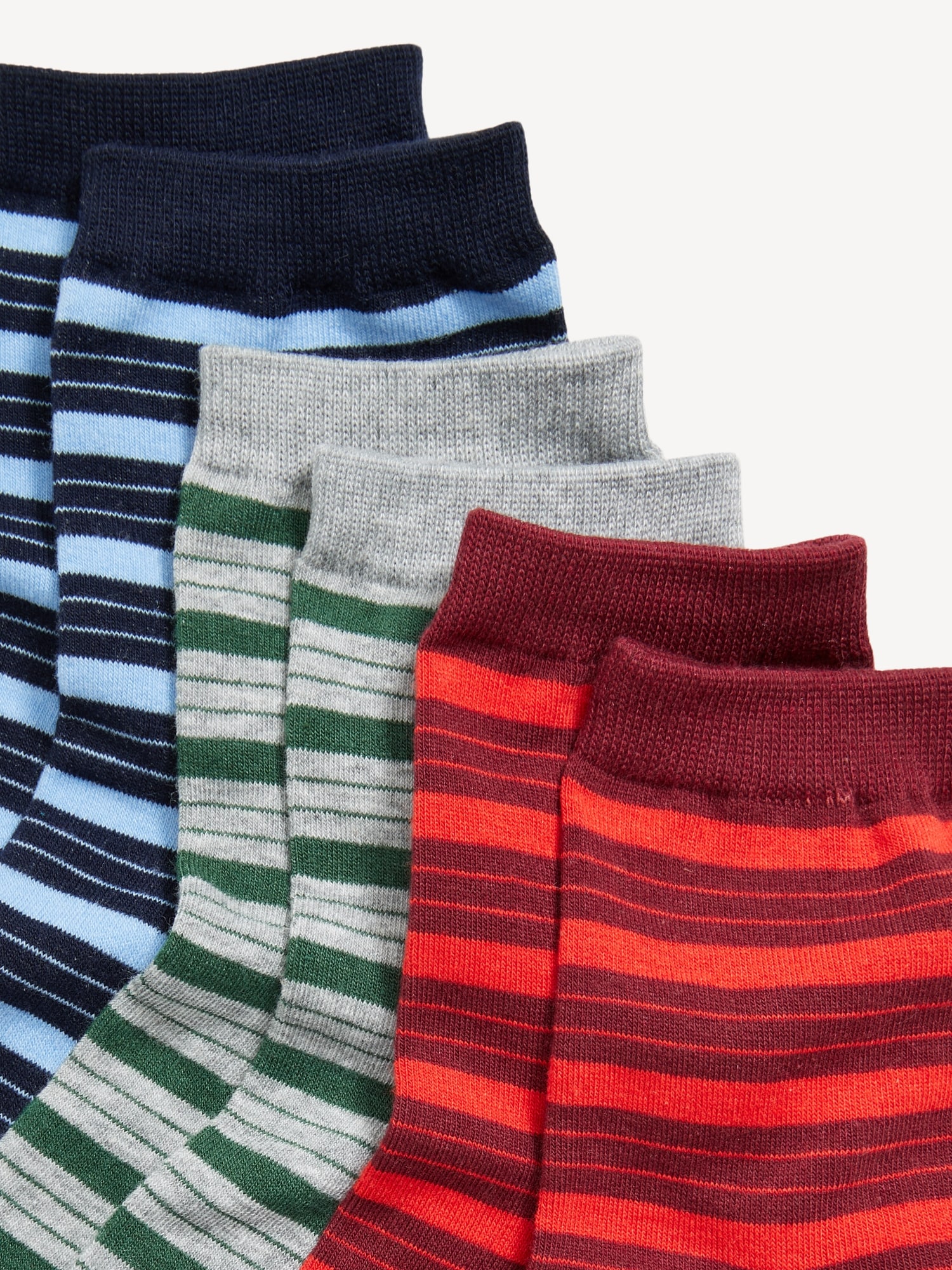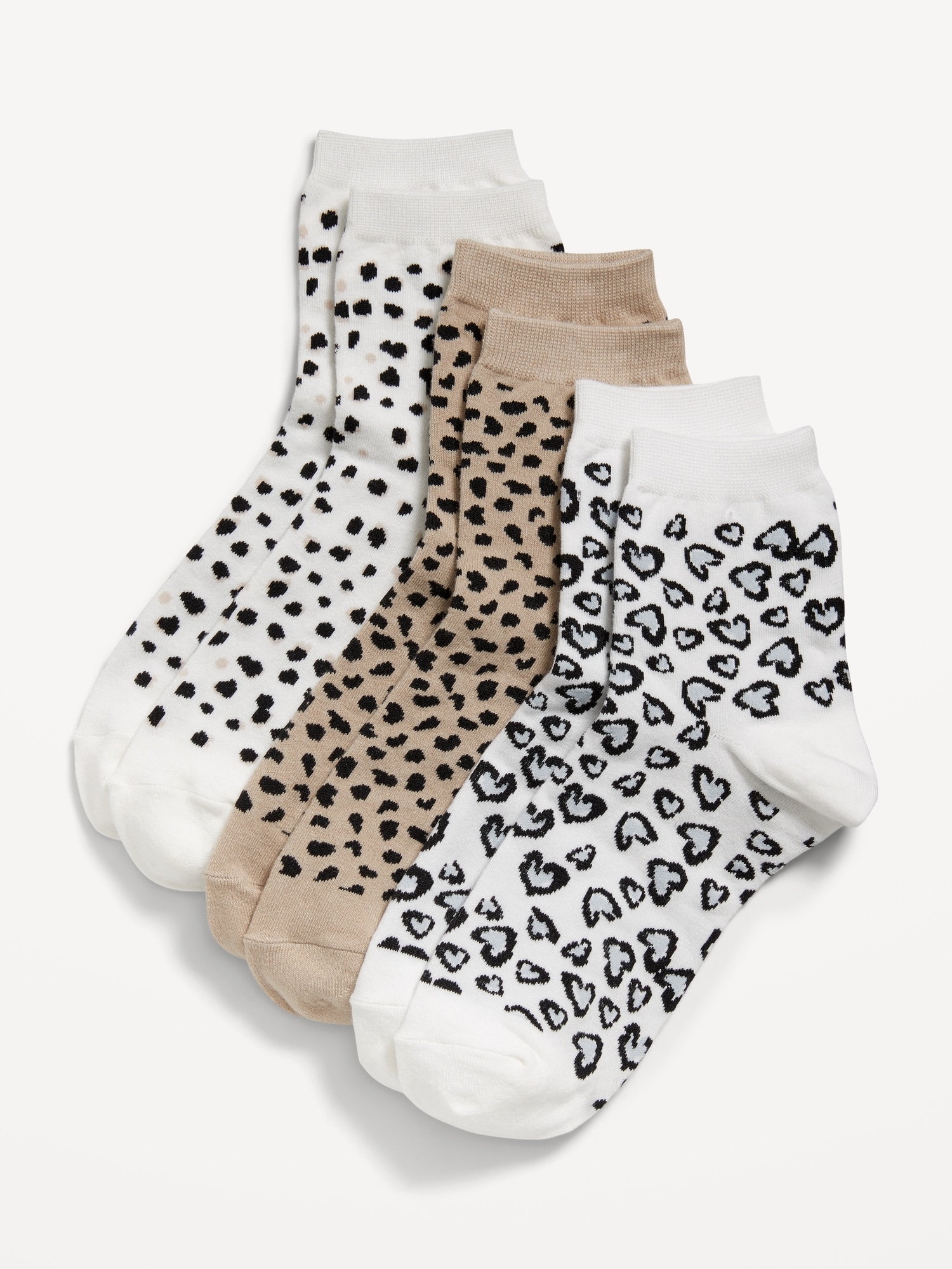 Novelty Quarter Crew Socks 3-Pack: includes 3 pairs of quarter crew socks, rib-knit openings, notched seams at toe and heel, #609246