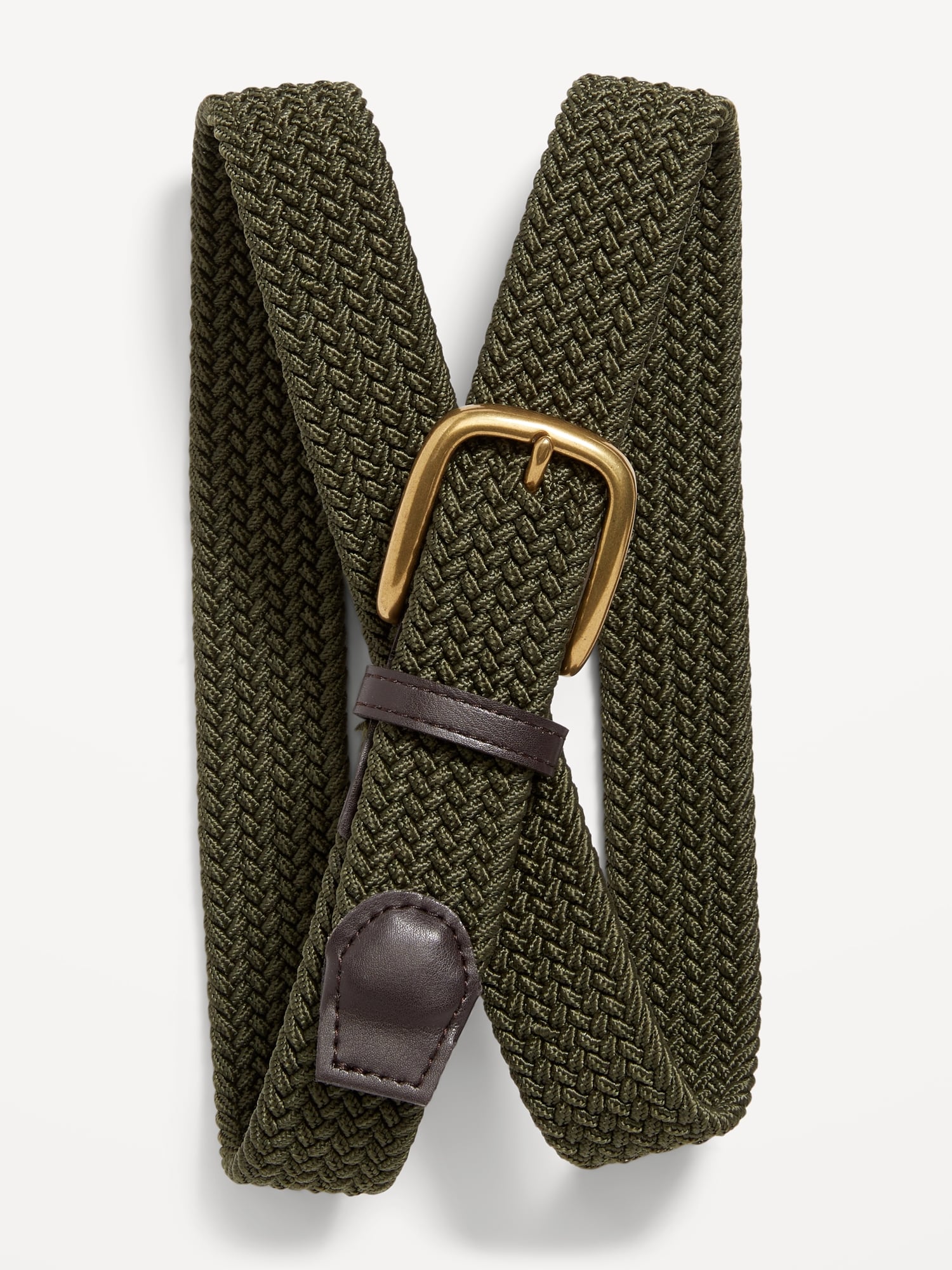 Nylon Braided Belt (1.25-inch): braided-nylon belt, metal buckle, faux-leather accents, #846035