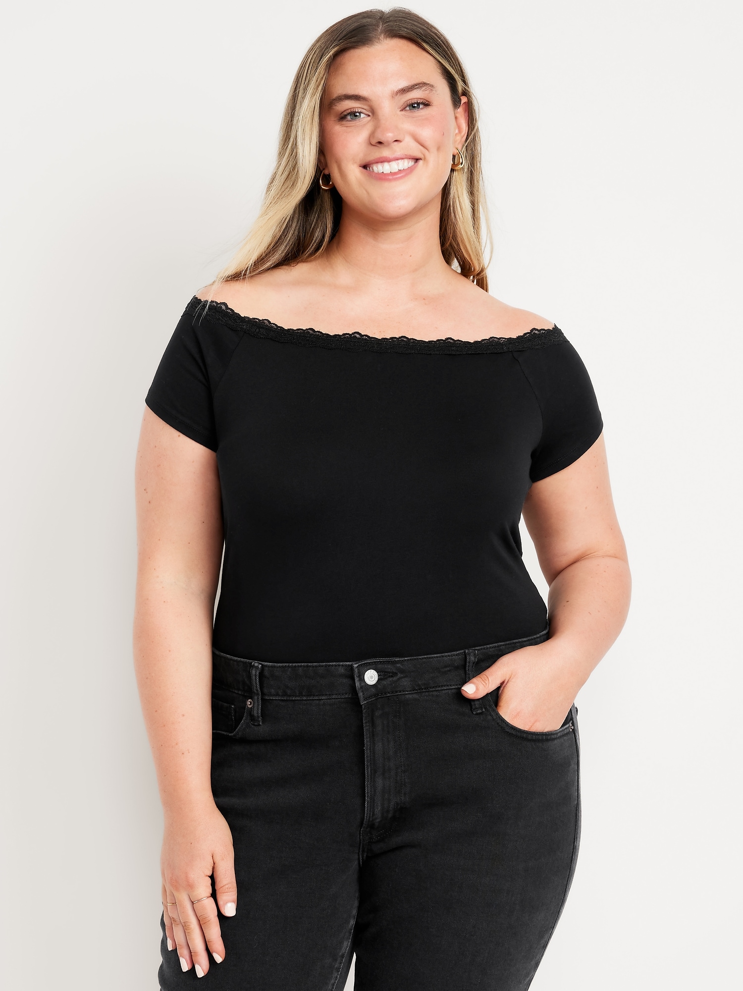 Off-Shoulder Lace-Trim Top
