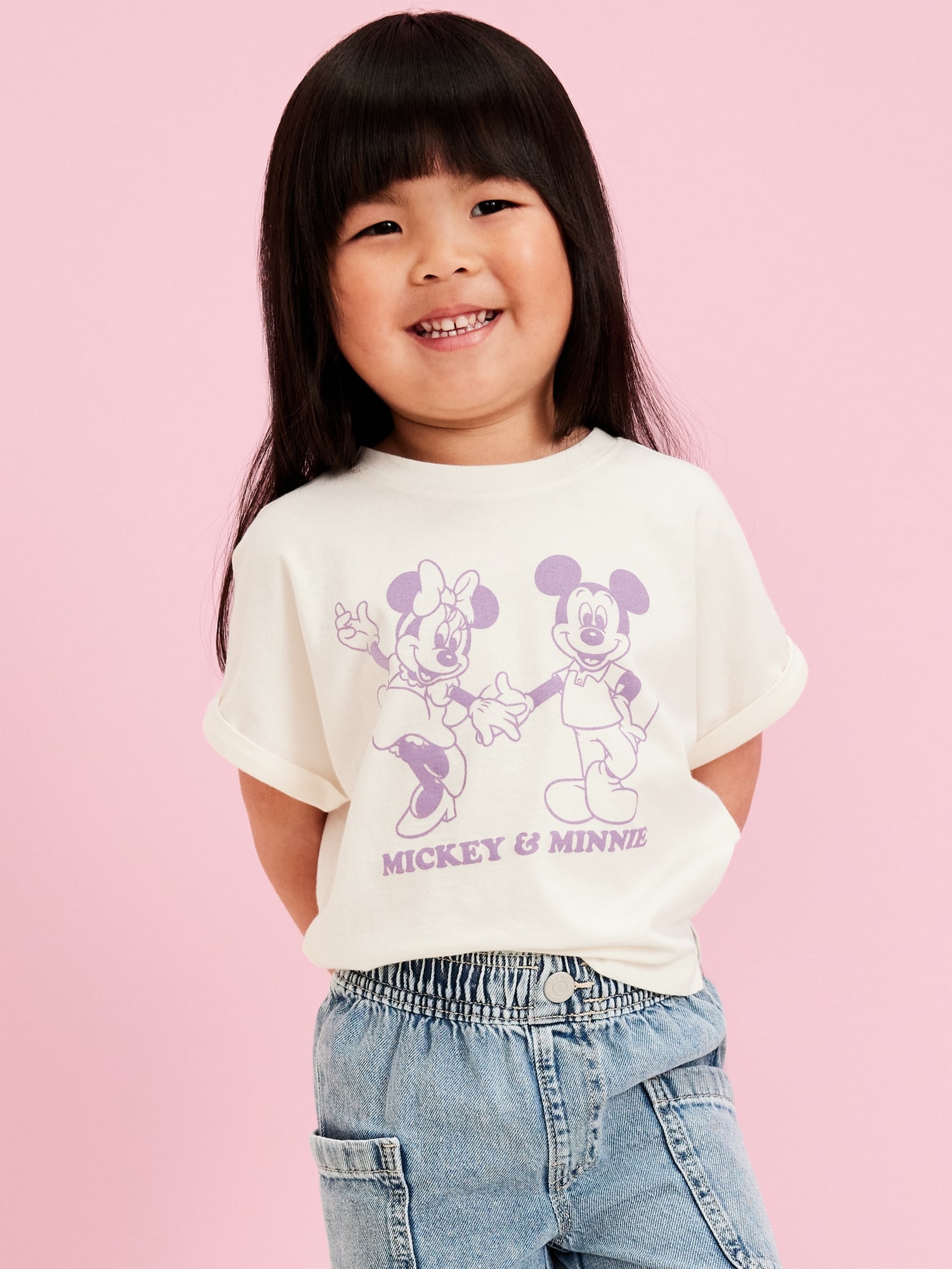 Old Navy x Disney© Dolman-Sleeve T-Shirt for Toddler Girls: crew neck, short dolman sleeves, rolled cuffs, licensed graphic, forward side seam with slits, Disney©, #762108