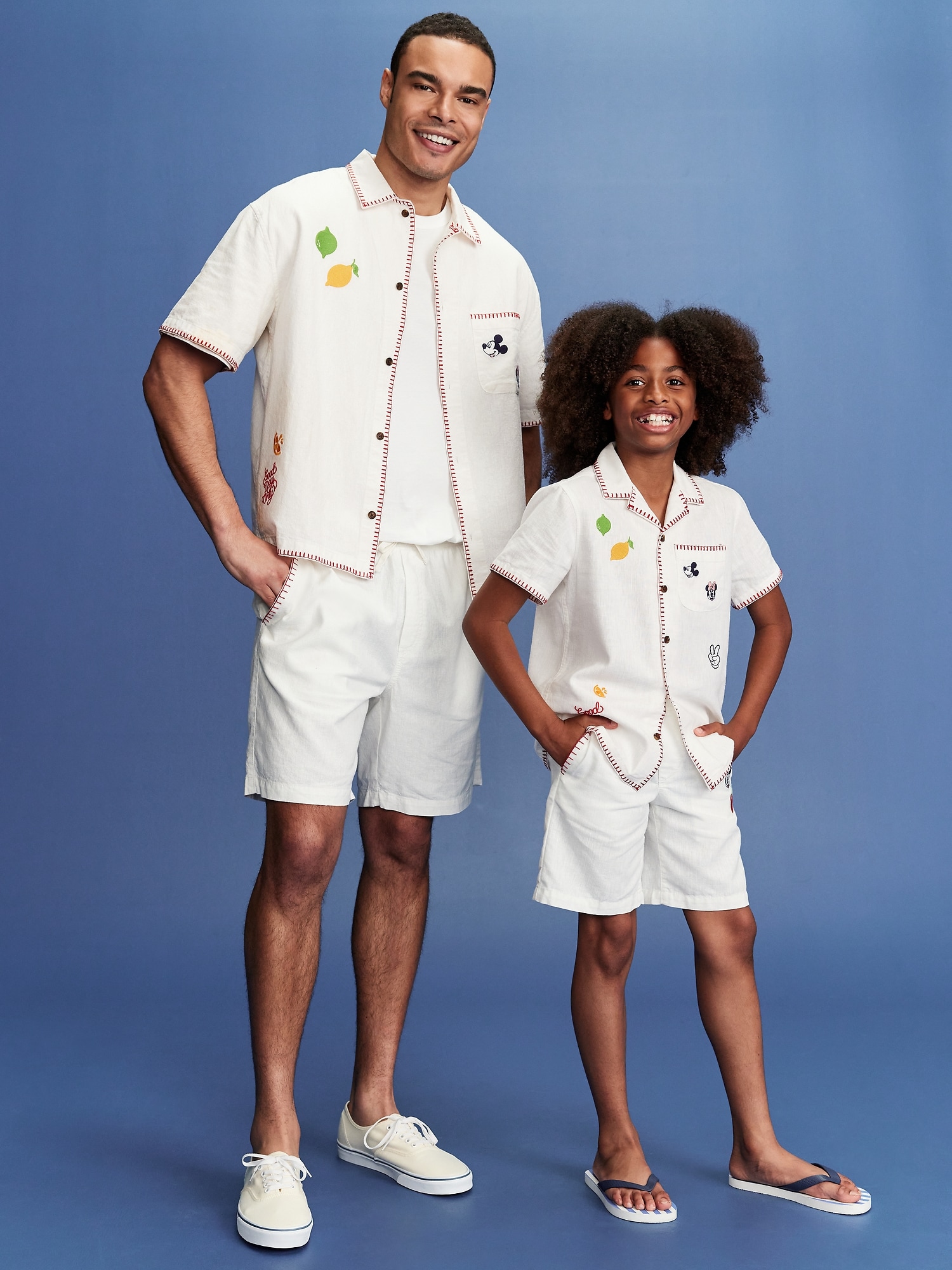 Old Navy x Disney© Linen-Blend Embroidered Pocket Shirt for Boys: Two icons, together at last. Browse the collection for the whole fam.spread collar, short sleeves, patch pocket at chest, full length buttoned placket, licensed graphic, all-over stripes, Disney©, #761685