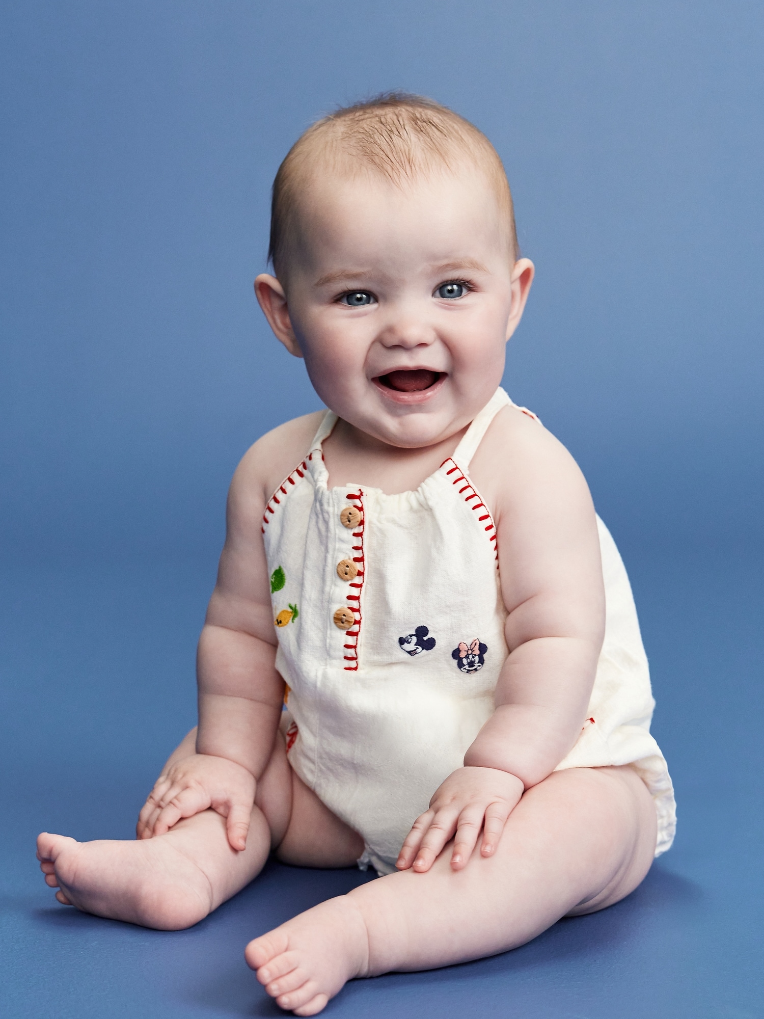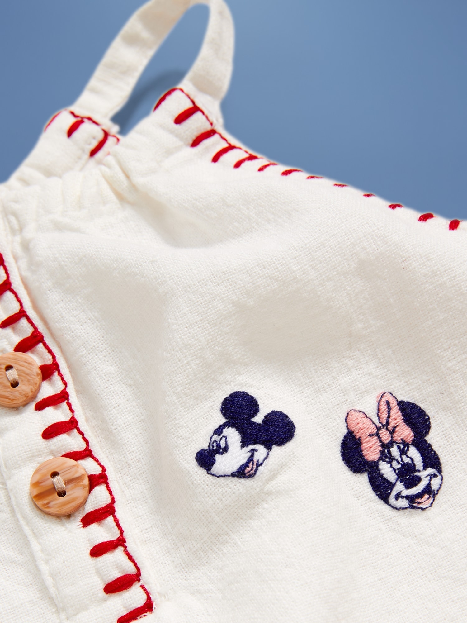 Old Navy x Disney© Linen-Blend Sleeveless One-Piece Romper for Baby: Two icons, together at last. Family matching for the crew!cinched round neckline, three-button henley placket, sleeveless, elasticized bubble leg openings, hidden snaps along inseam, licensed graphic, Disney©, #761818