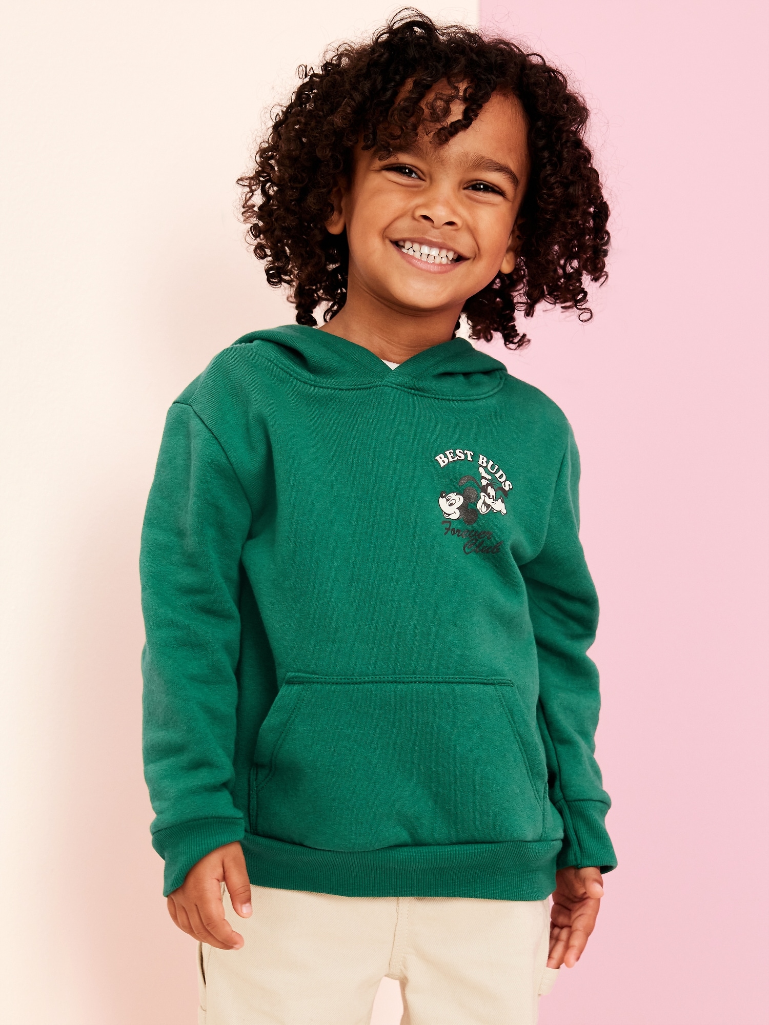 Old Navy x Disney© Loose Graphic Hoodie for Toddler Boys: built-in hood, long sleeves, kangaroo pocket, licensed graphic varies by color, pullover style, Disney©, #763032