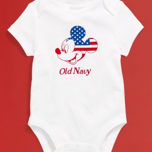 Old Navy x Disney© Mickey Mouse Flag Logo-Graphic Bodysuit for Baby: Two icons, together at last. Family matching for the crew!rib-knit envelope neckline, short sleeves, snaps along inseam, licensed graphic, Disney©, #776474