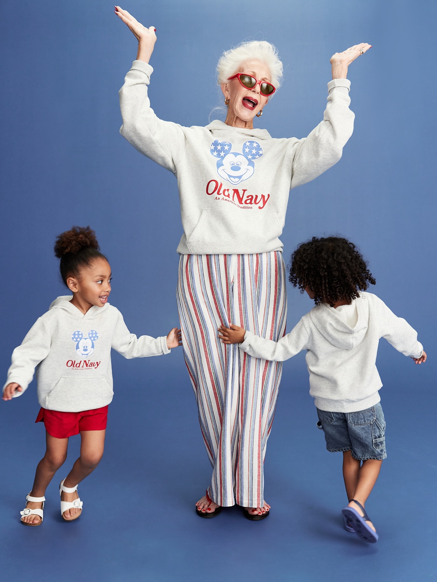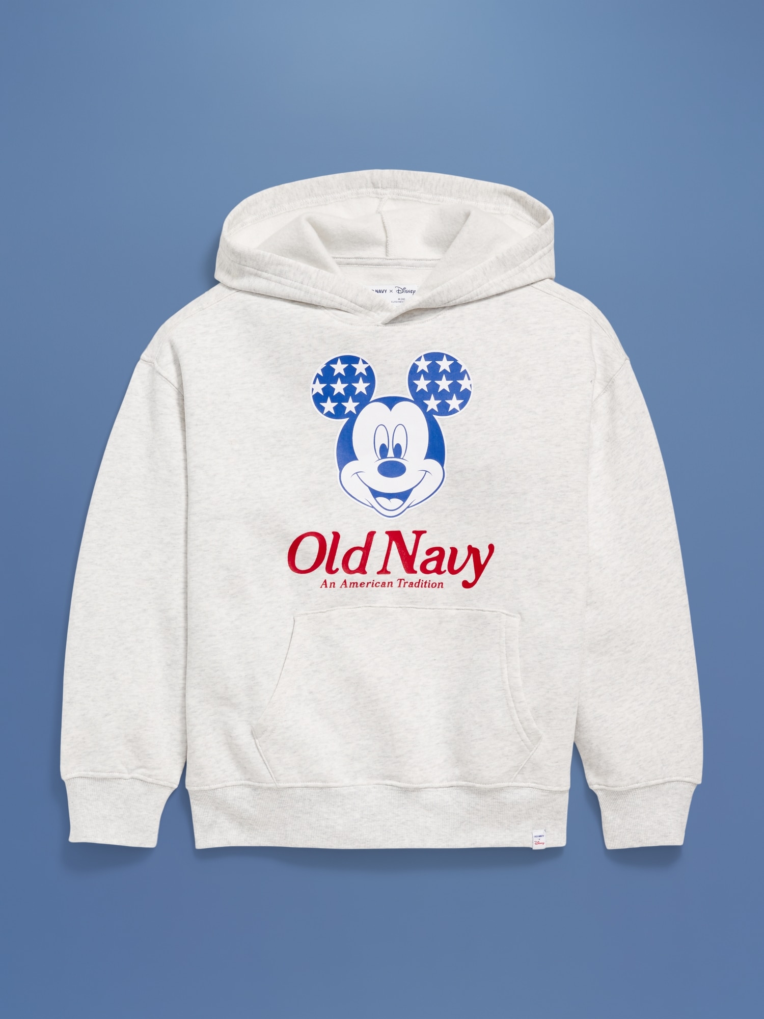 Old Navy x Disney© Mickey Mouse Gender-Neutral Logo-Graphic Flag Hoodie for Kids: Two icons, together at last. Family matching for the crew!built-in hood, long sleeves, drop shoulders, kangaroo pocket, banded hem, licensed graphic, Disney©, #761758