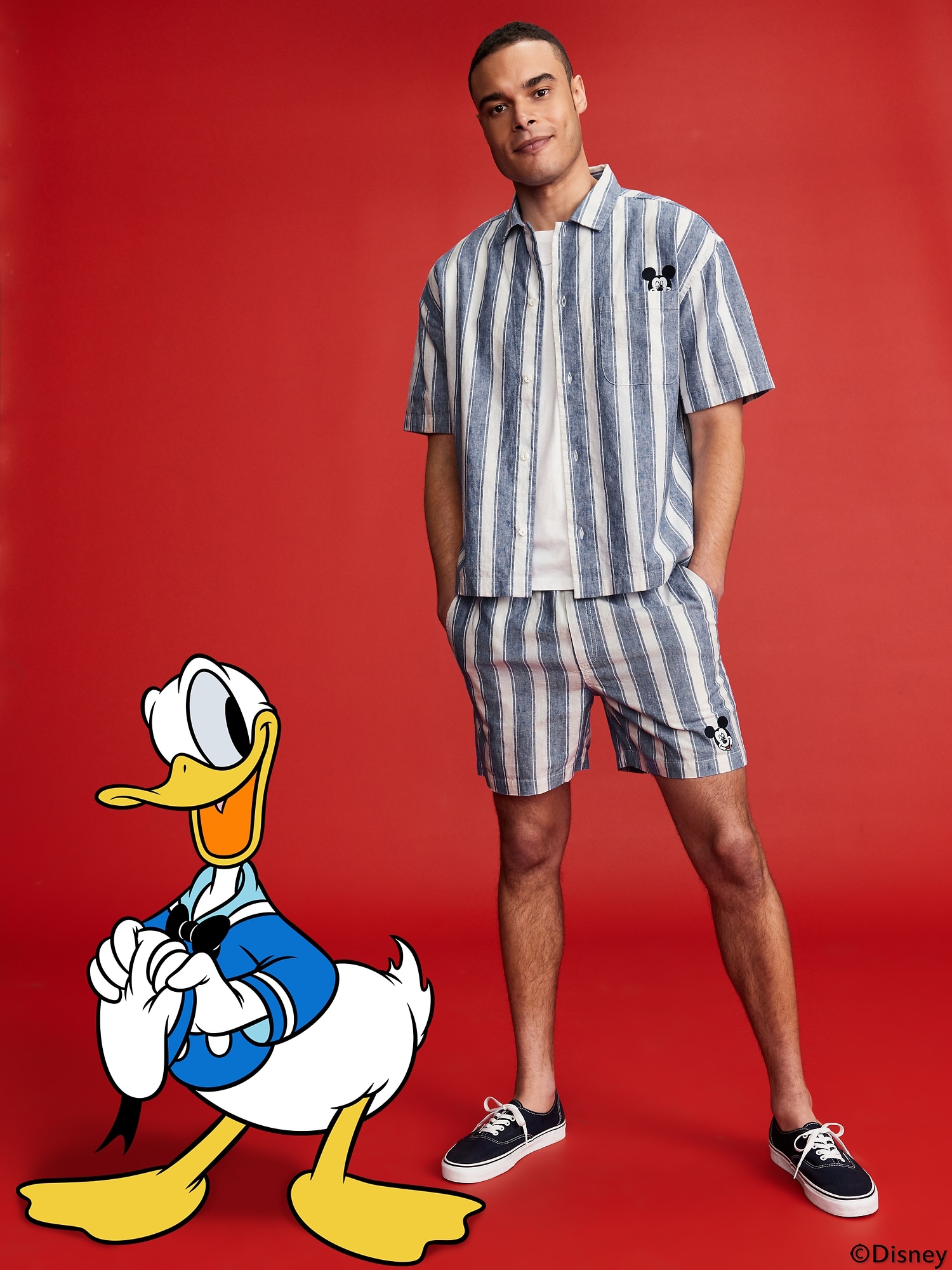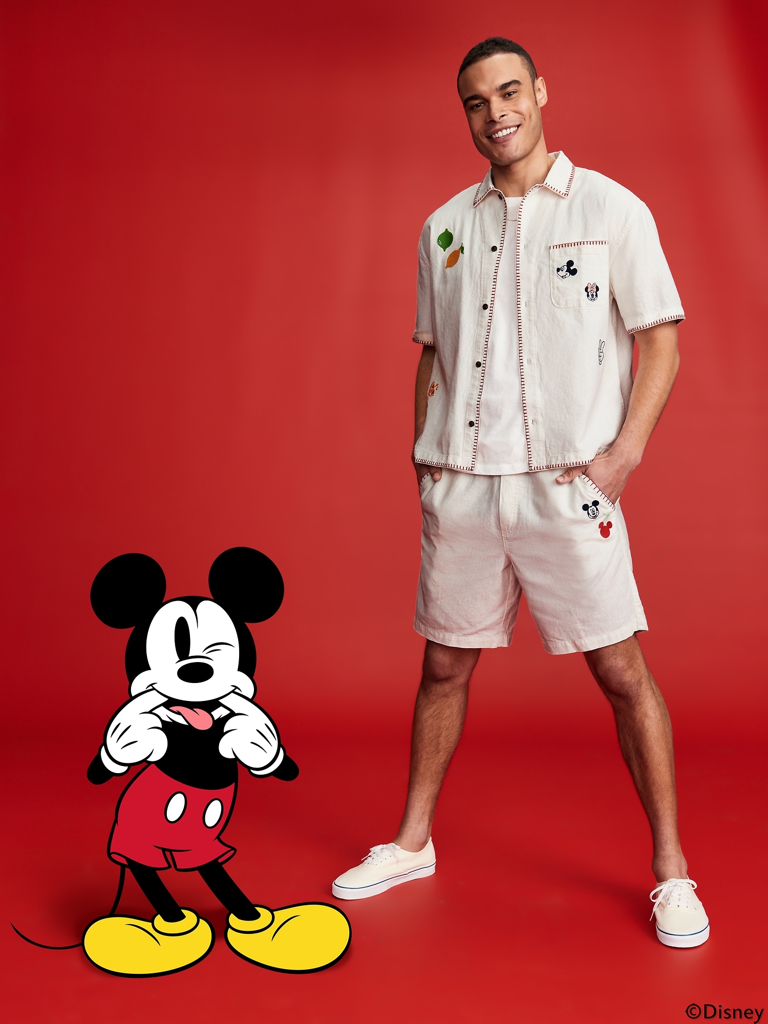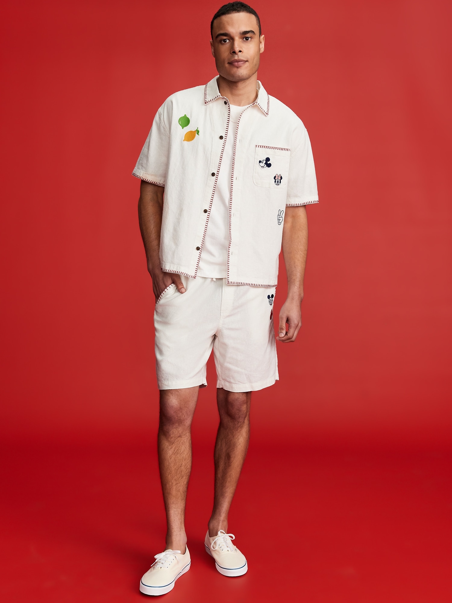 Old Navy x Disney© Mickey Mouse Linen-Blend Jogger Shorts — 7-inch inseam: Two icons, together at last. Family matching for the crew!elastic-drawstring waistband, faux fly, diagonal front pockets, back right welt pocket, embroidered licensed graphics at left hip, easy pull-on style, Disney©, #751392