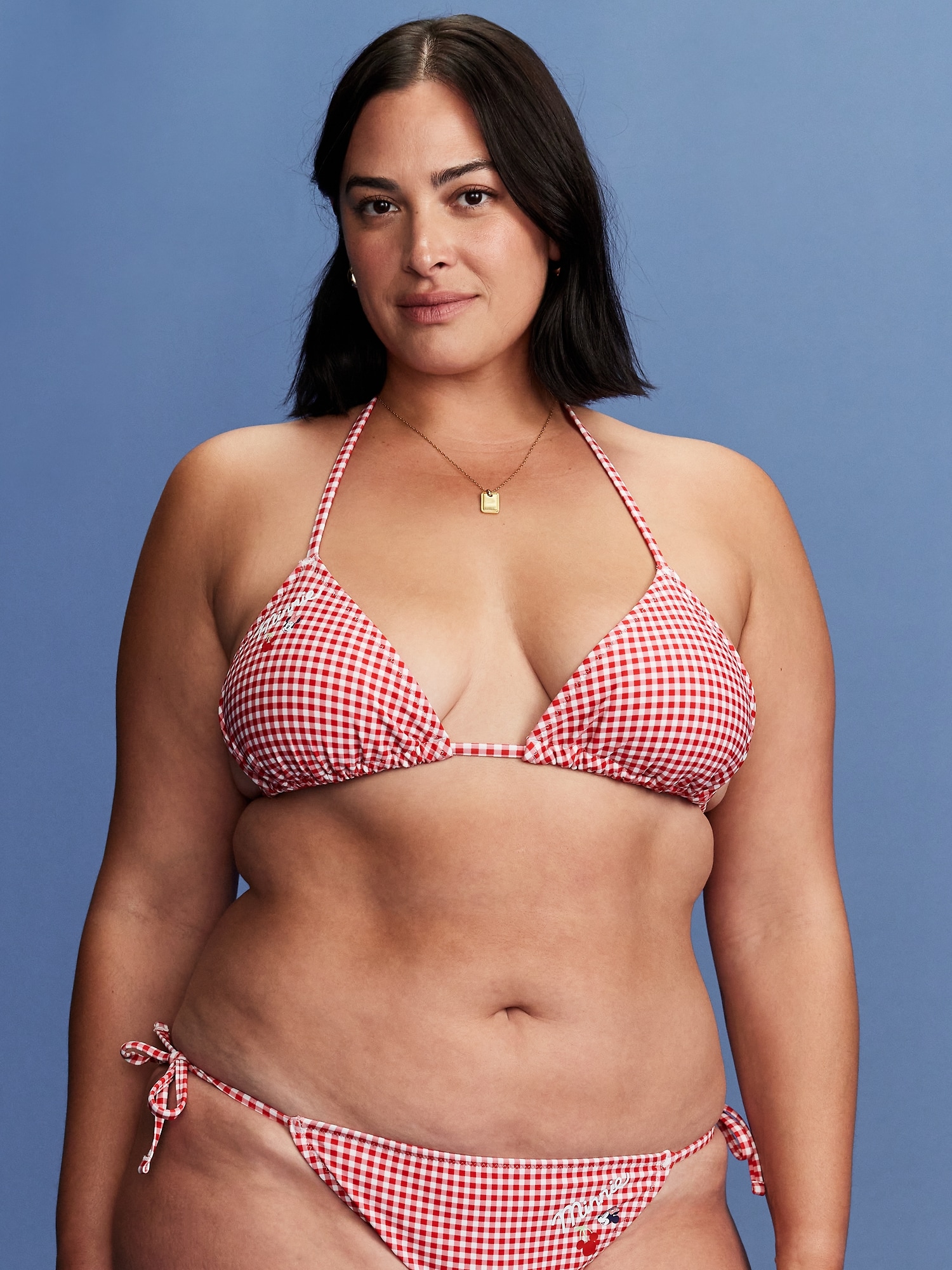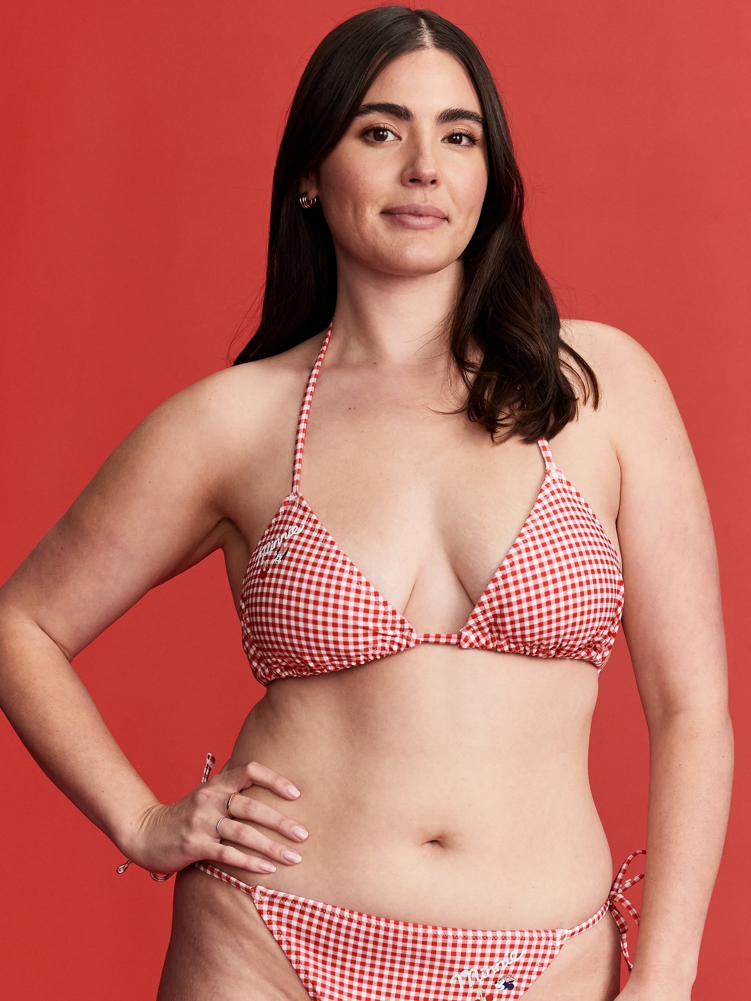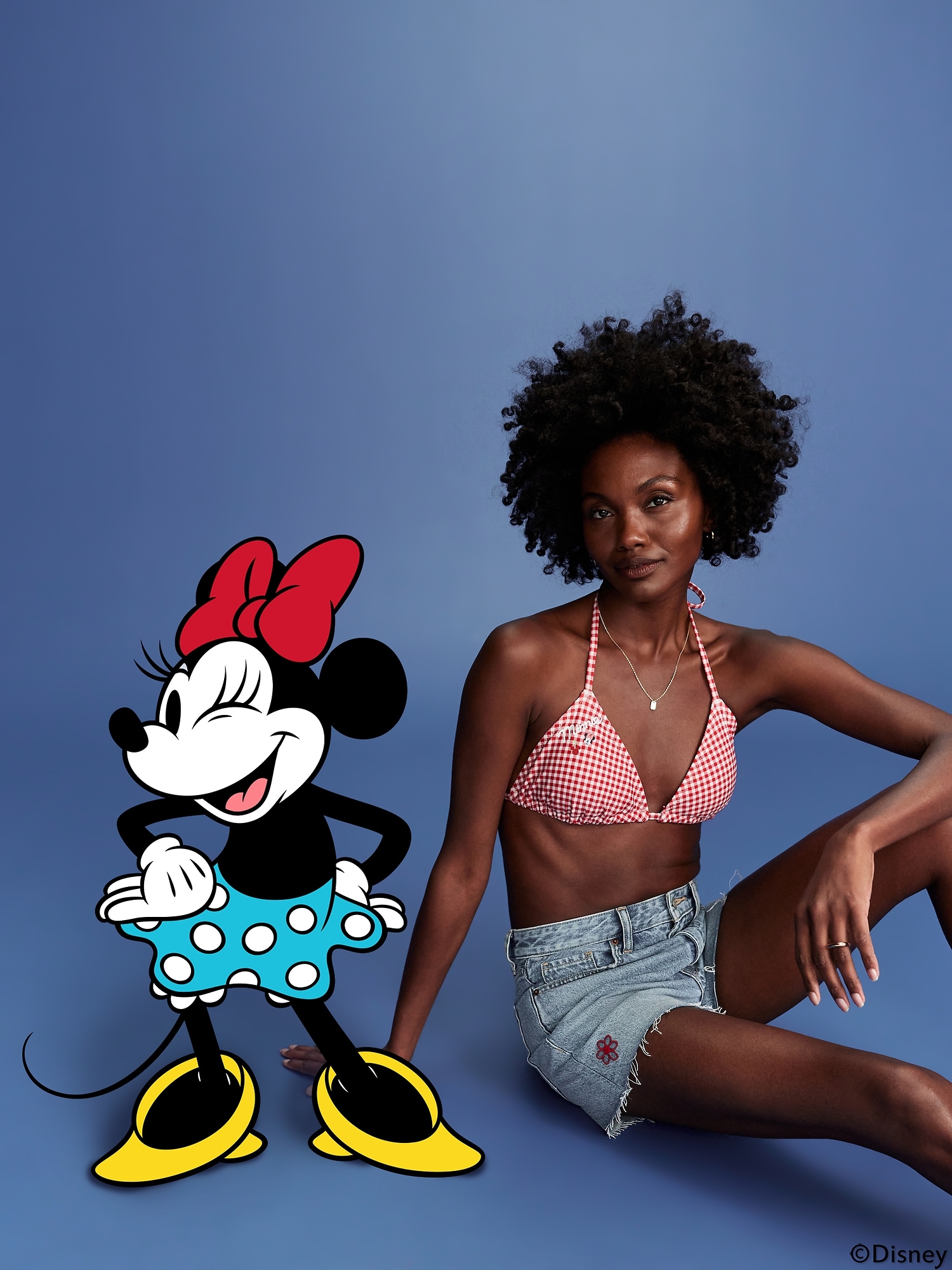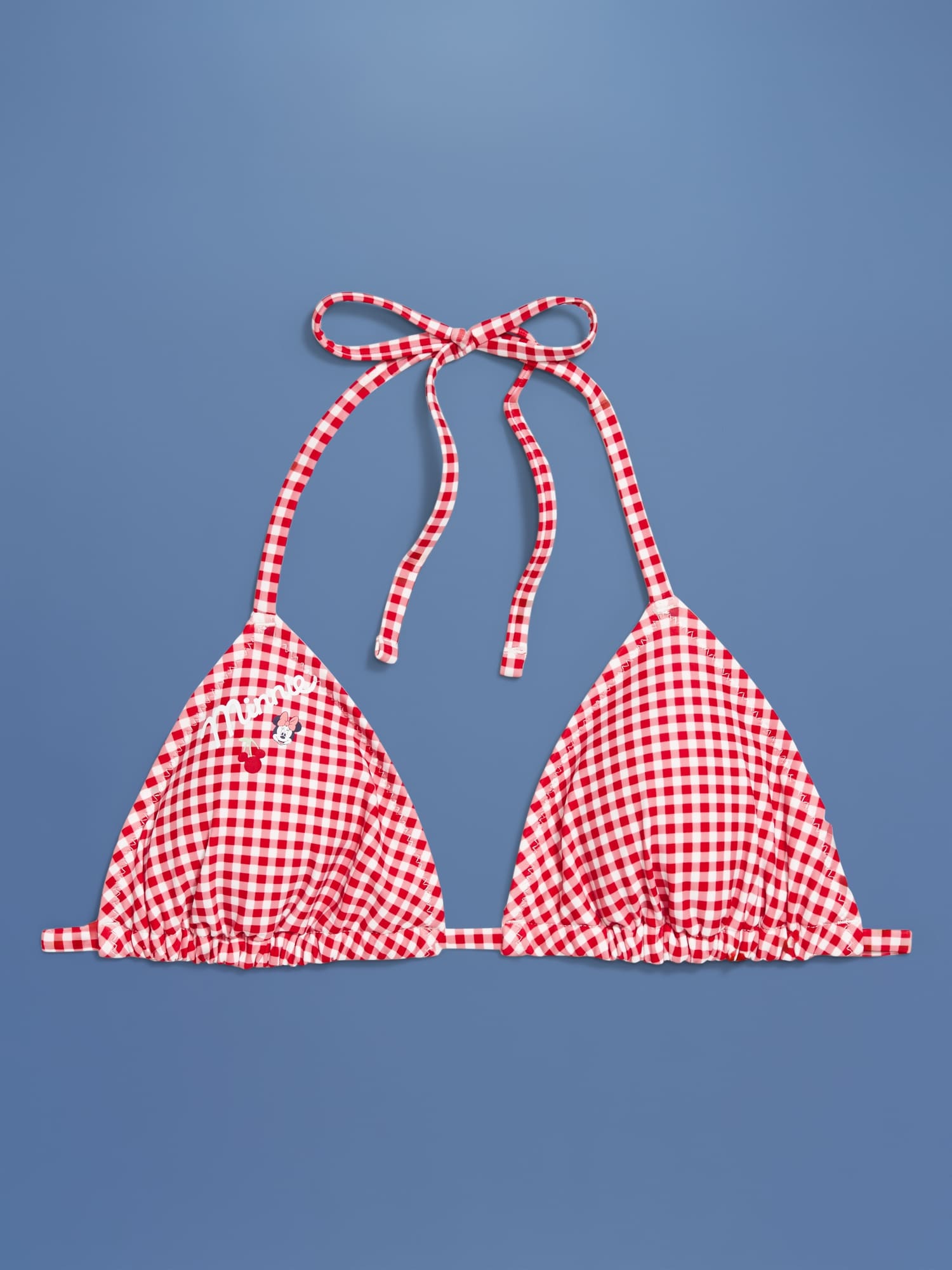 Old Navy x Disney© Minnie Mouse Triangle String Bikini Swim Top: Two icons, together at last. Browse the collection for the whole fam.tie-neck halter straps, removable pads, licensed character graphic, gingham print, fully lined, Disney©, #751399