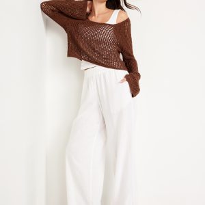 Open-Stitch Cropped Bouclé Sweater
