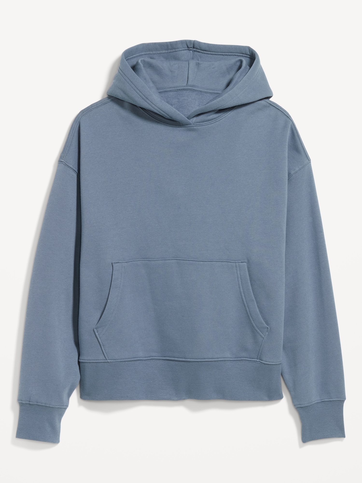 Oversized Cropped Hoodie: built-in hood, long sleeves, kangaroo pocket, rib-knit trim, pullover style, #665120