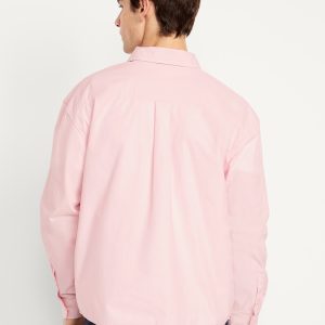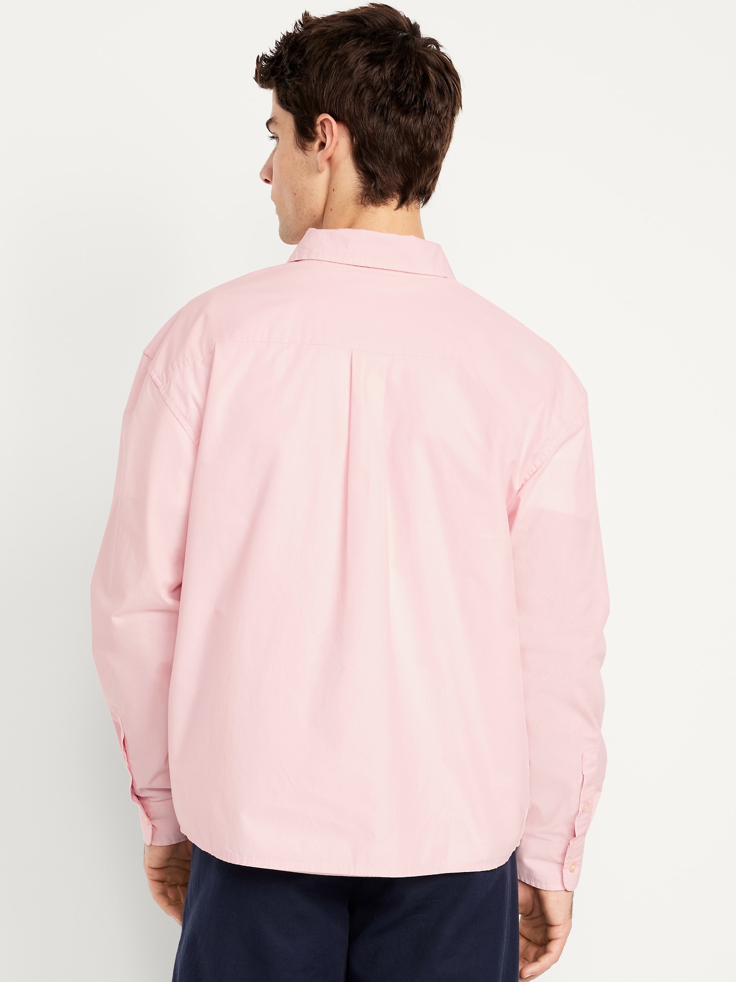 Oversized Cropped Poplin Shirt: spread collar, long sleeves, buttoned cuffs, full-button front, #781620