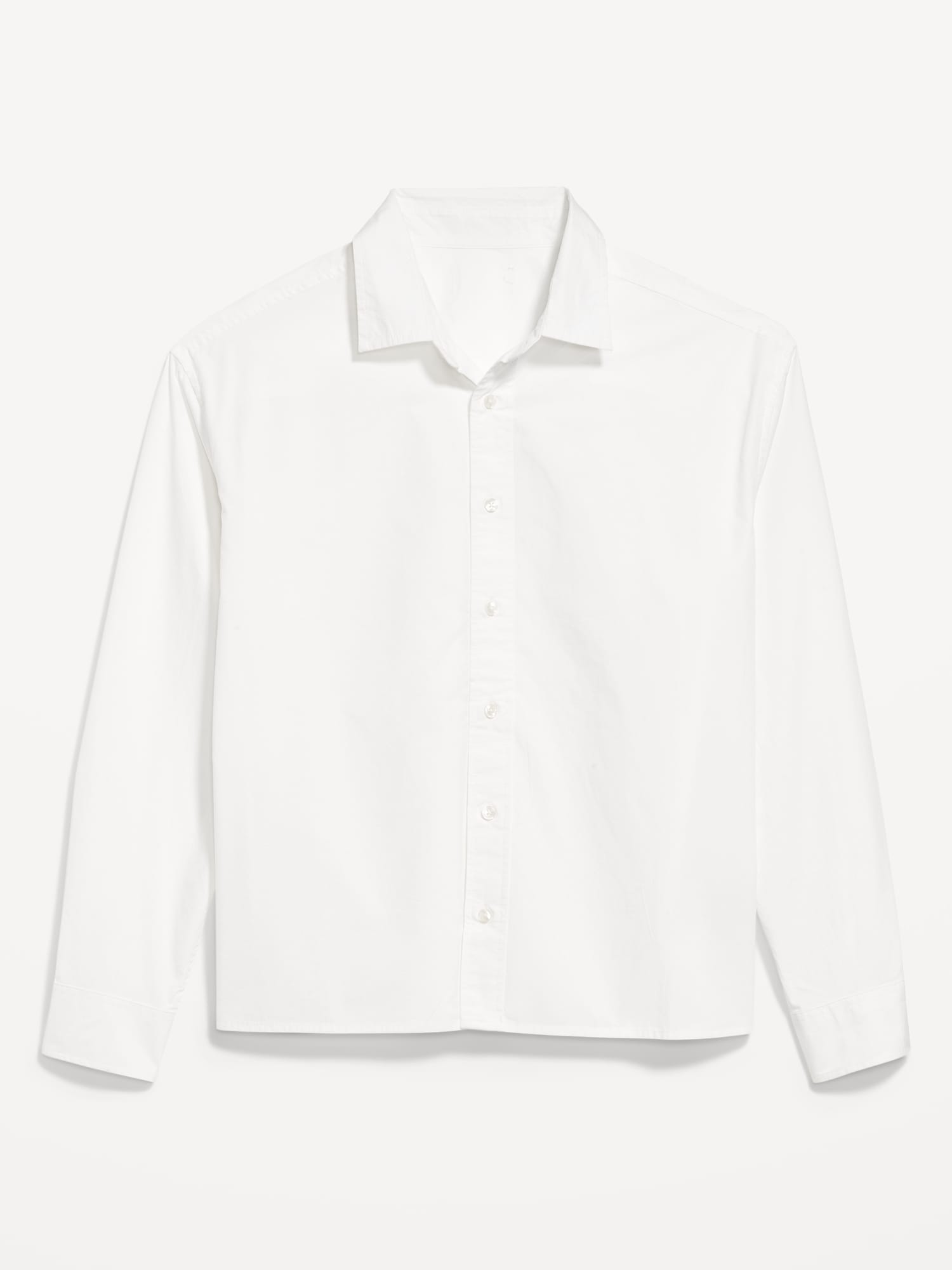 Oversized Cropped Poplin Shirt: spread collar, long sleeves, buttoned cuffs, full-button front, #781620