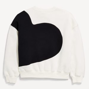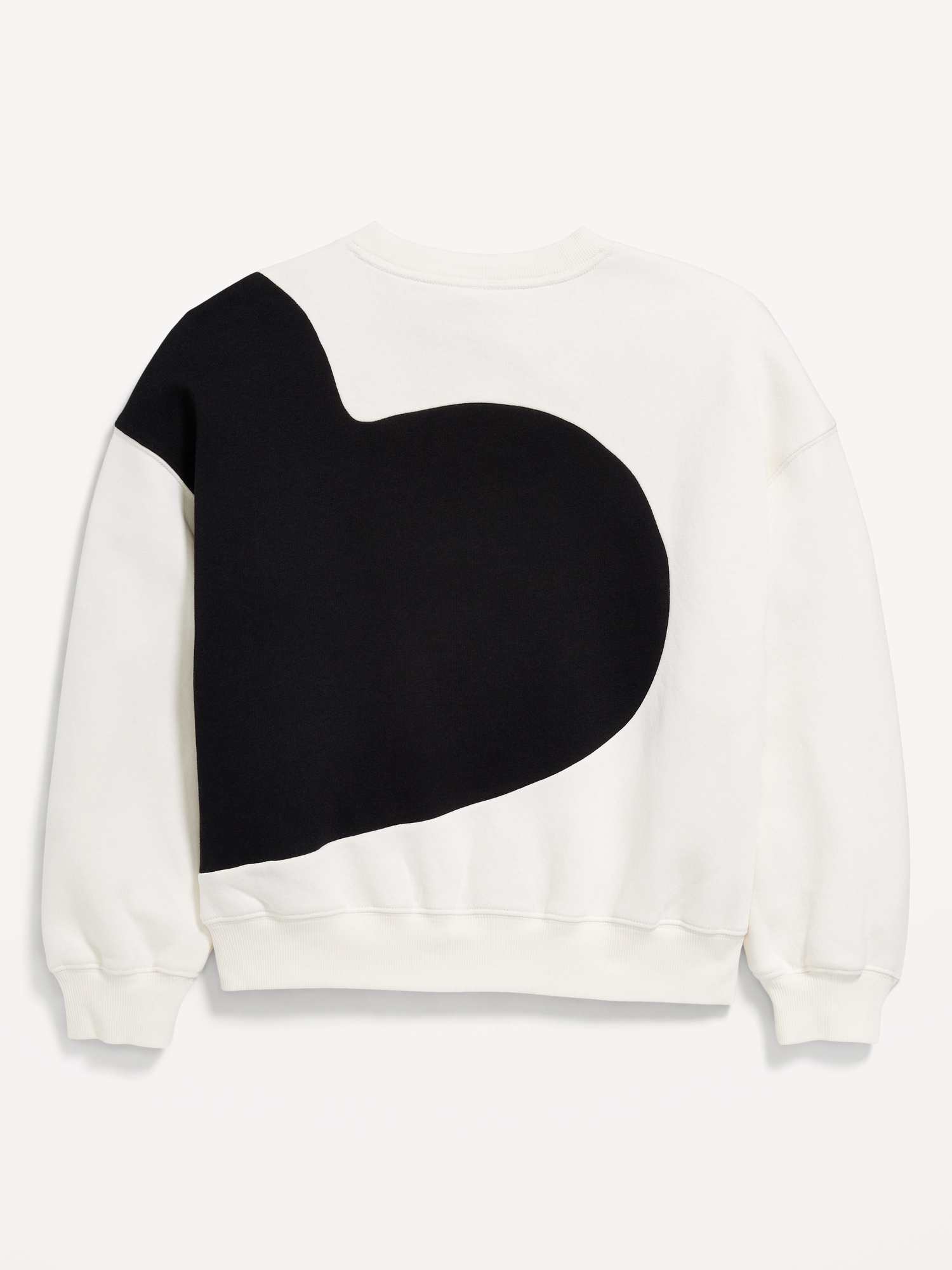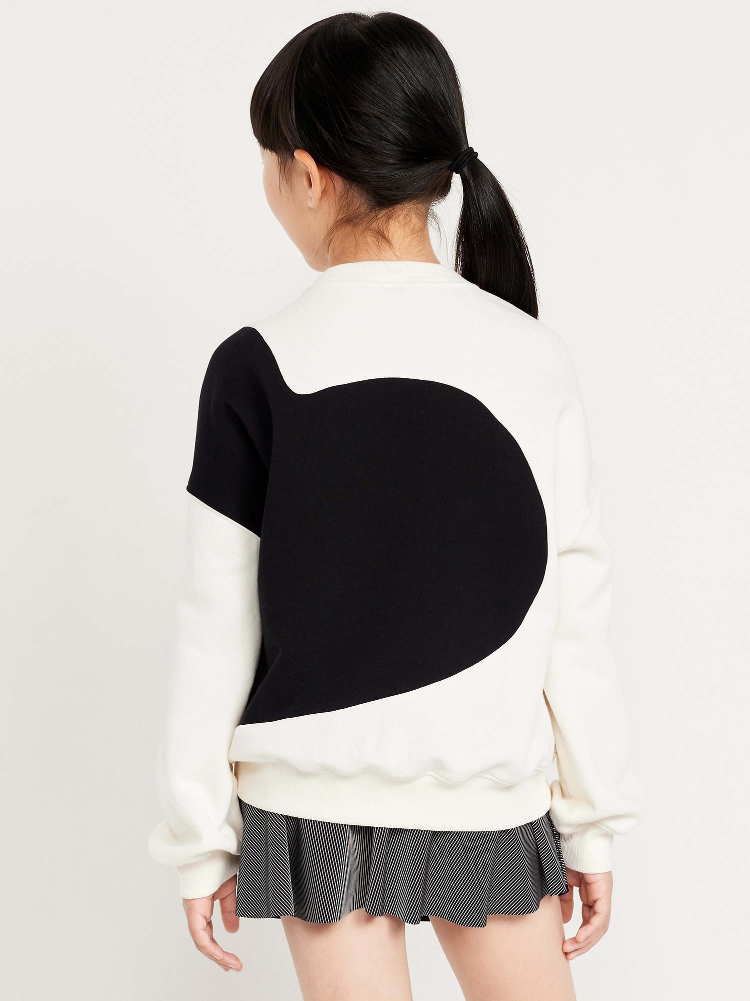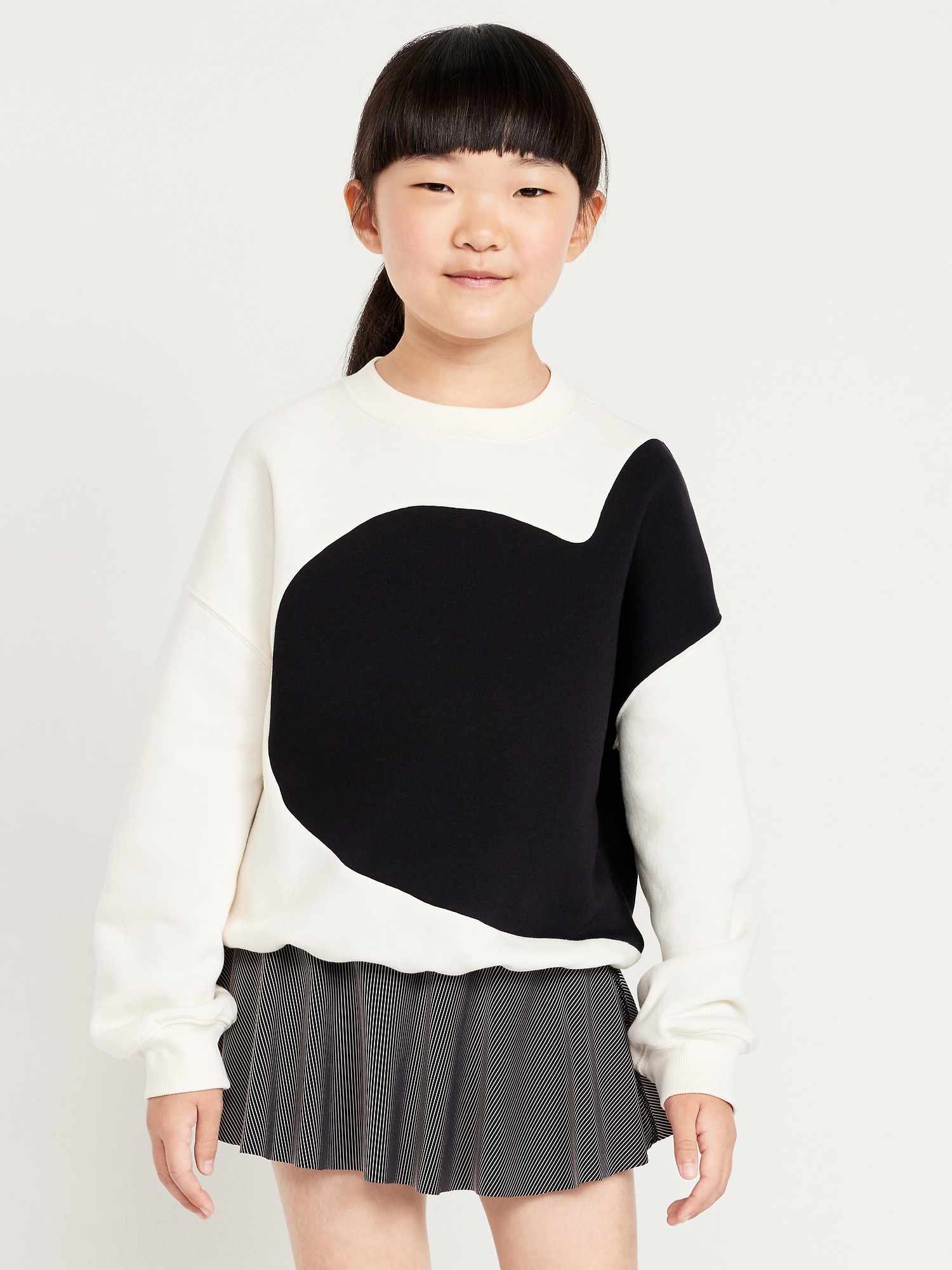 Oversized Graphic Tunic Sweatshirt for Girls: crew neck, long sleeves, drop shoulders, large print at front, banded hem, easy pullover style, #787768