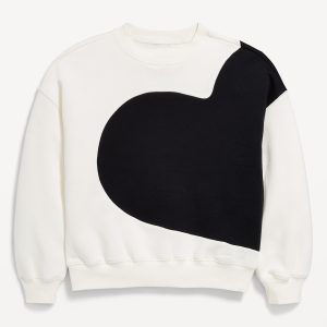 Oversized Graphic Tunic Sweatshirt for Girls: crew neck, long sleeves, drop shoulders, large print at front, banded hem, easy pullover style, #787768