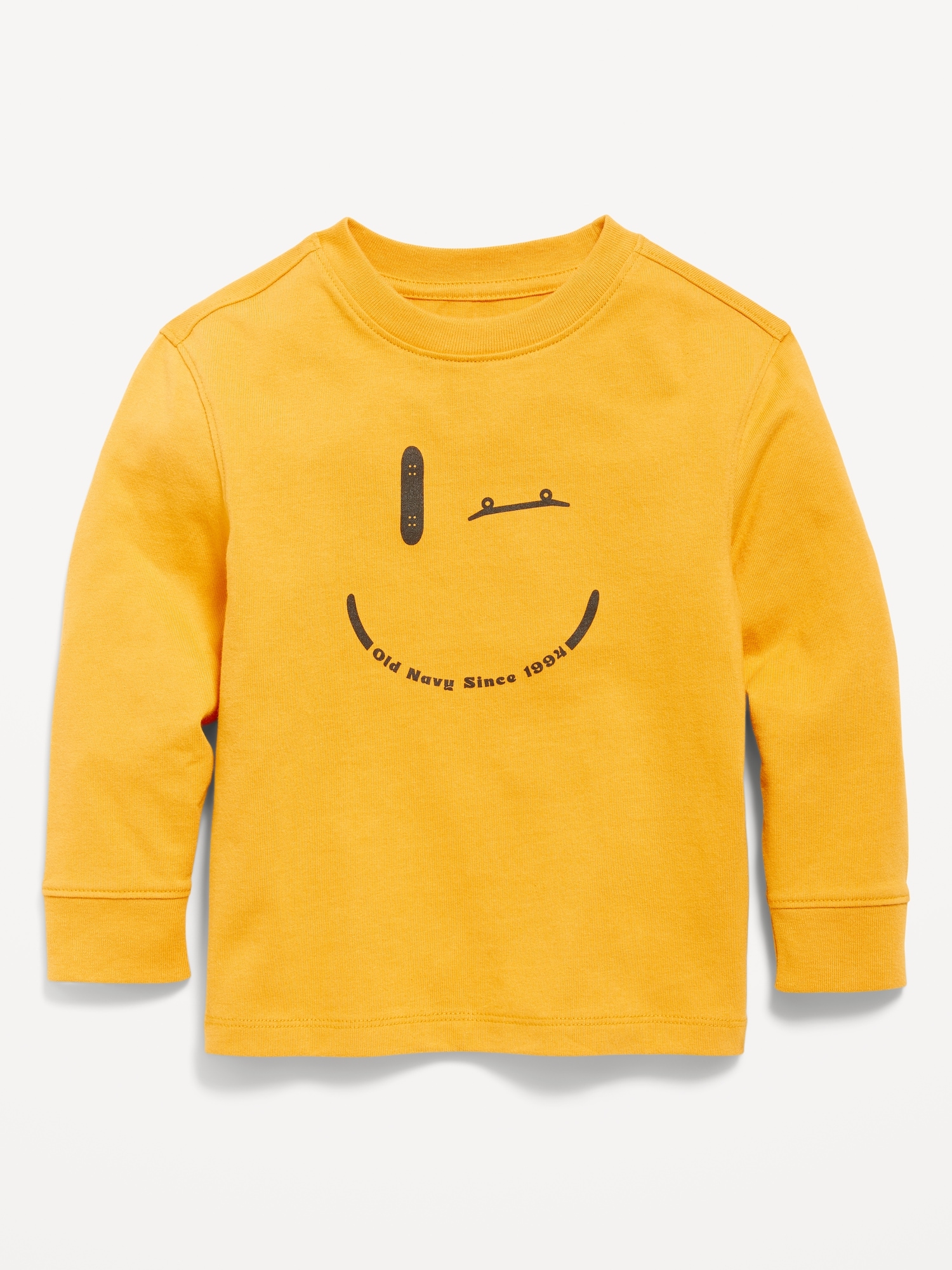 Oversized Heavyweight Logo-Graphic T-Shirt for Toddler Boys: crew neck, long sleeves, drop shoulders, logo graphic at front, #766989