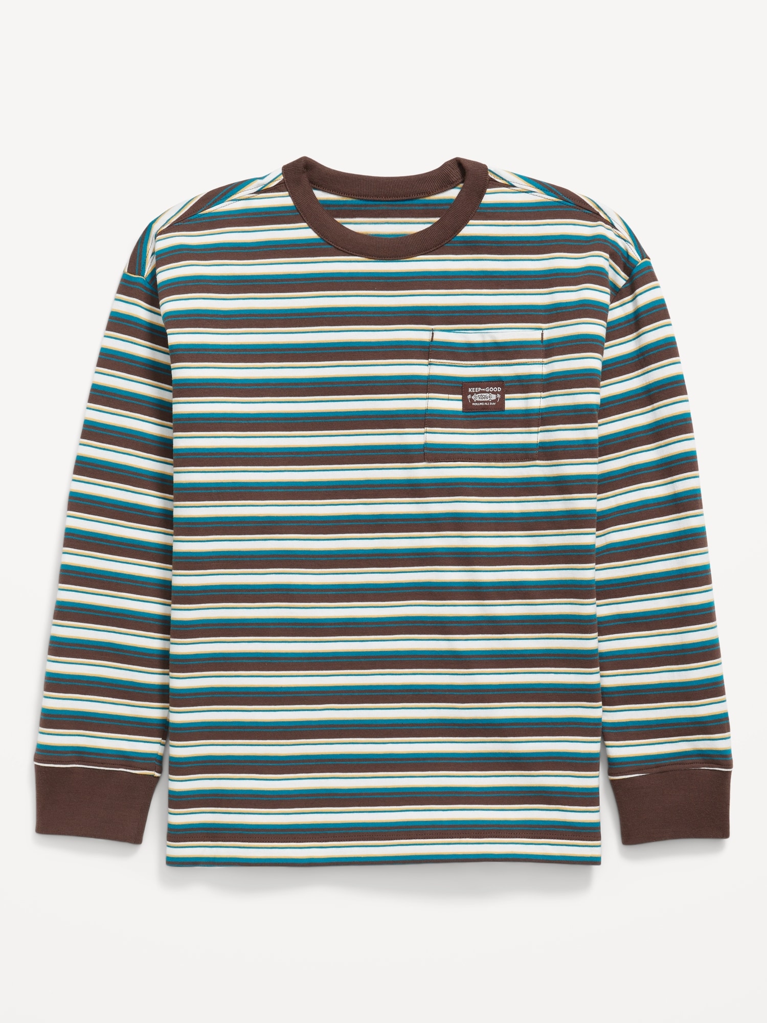 Oversized Long-Sleeve Pocket T-Shirt for Boys: crew neck, long sleeves, drop shoulders, graphic at front, #750309