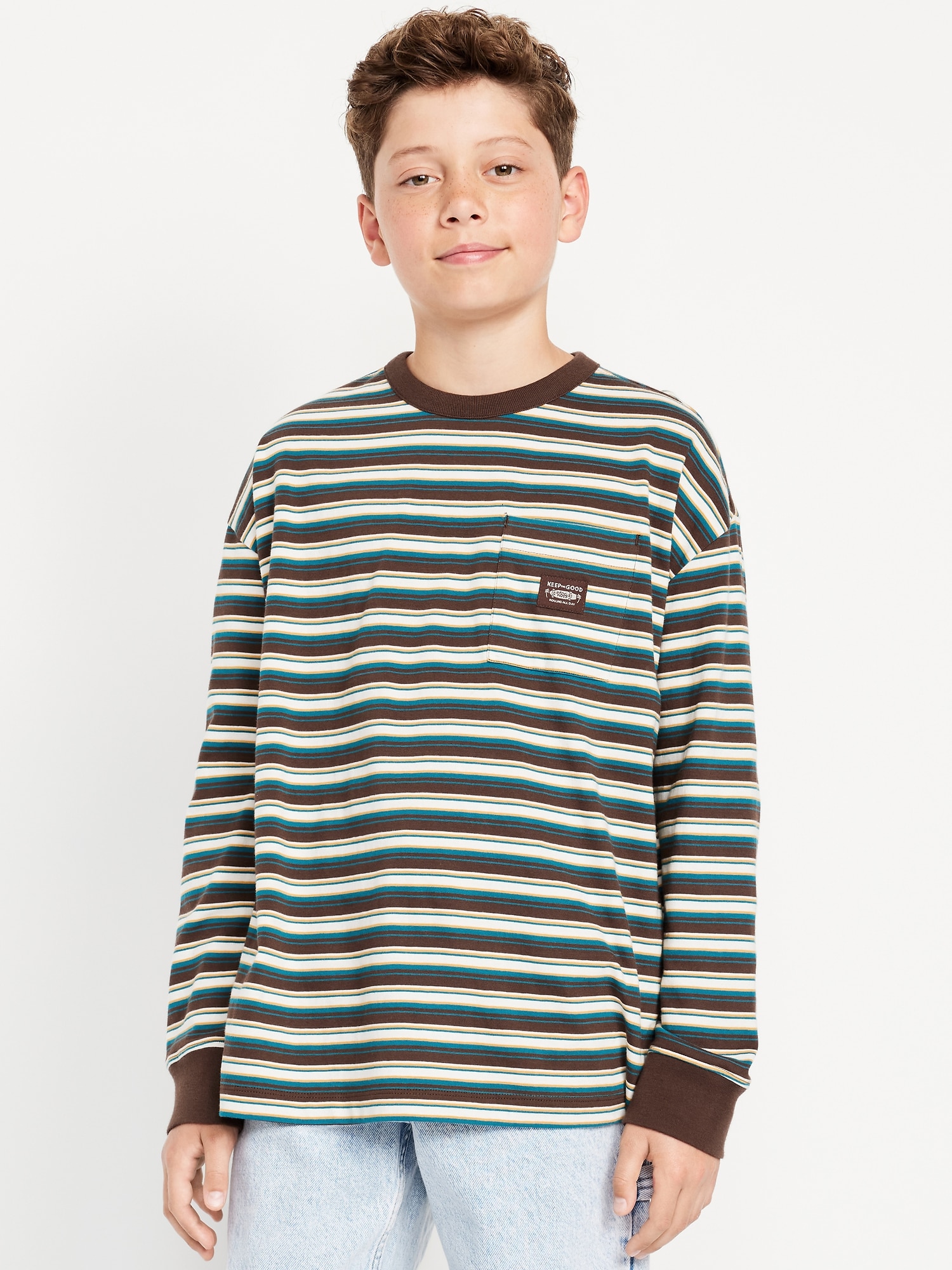 Oversized Long-Sleeve Pocket T-Shirt for Boys: crew neck, long sleeves, drop shoulders, graphic at front, #750309