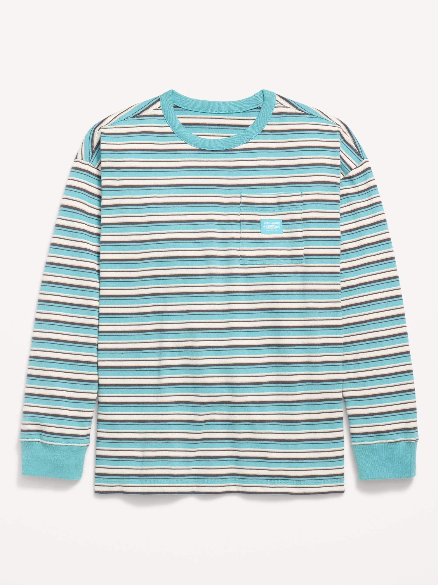Oversized Long-Sleeve Pocket T-Shirt for Boys: crew neck, long sleeves, drop shoulders, graphic at front, #750309