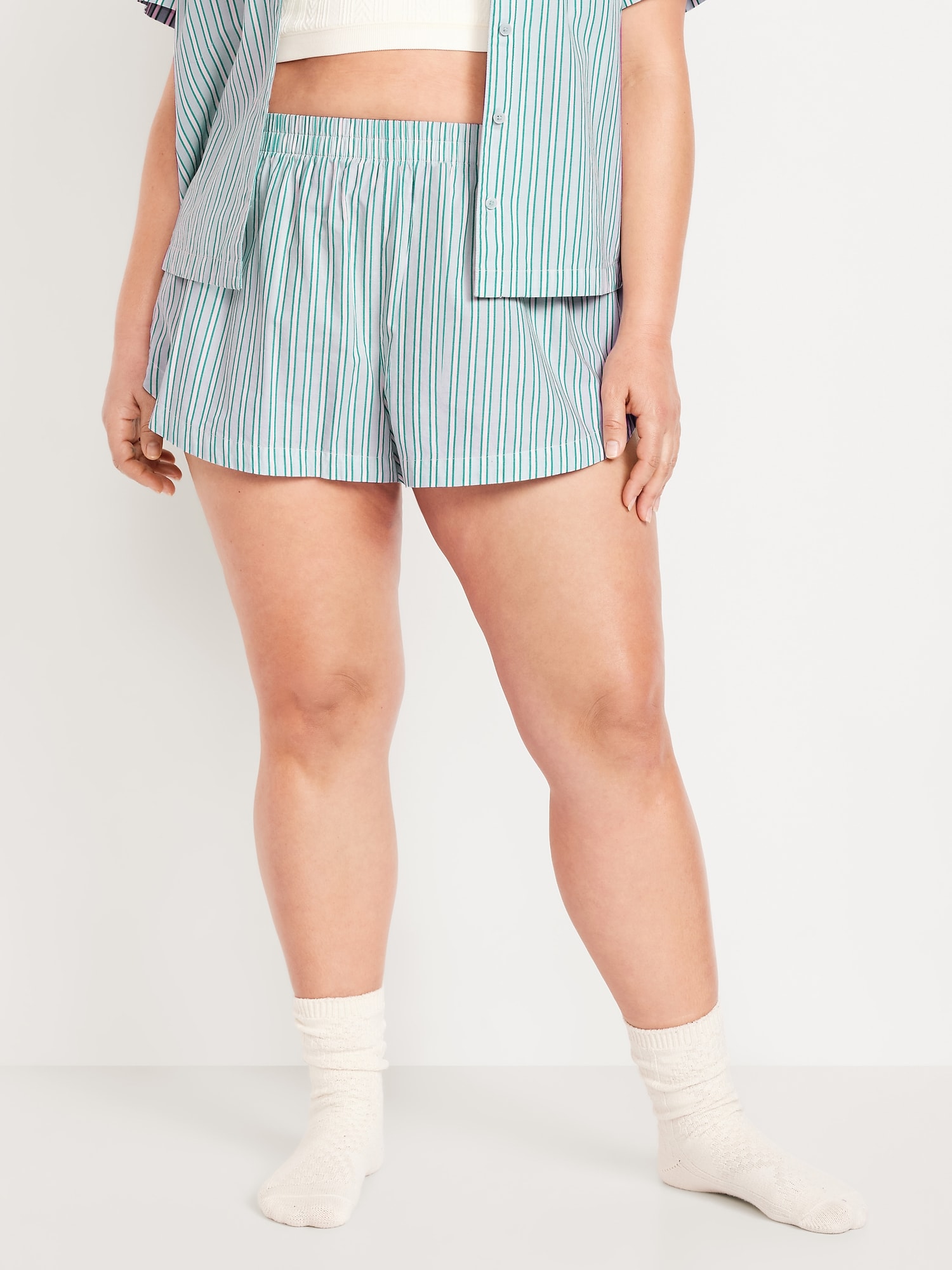 Oversized Poplin Pajama Shorts: elastic waistband, vented sides, prints vary, #707497