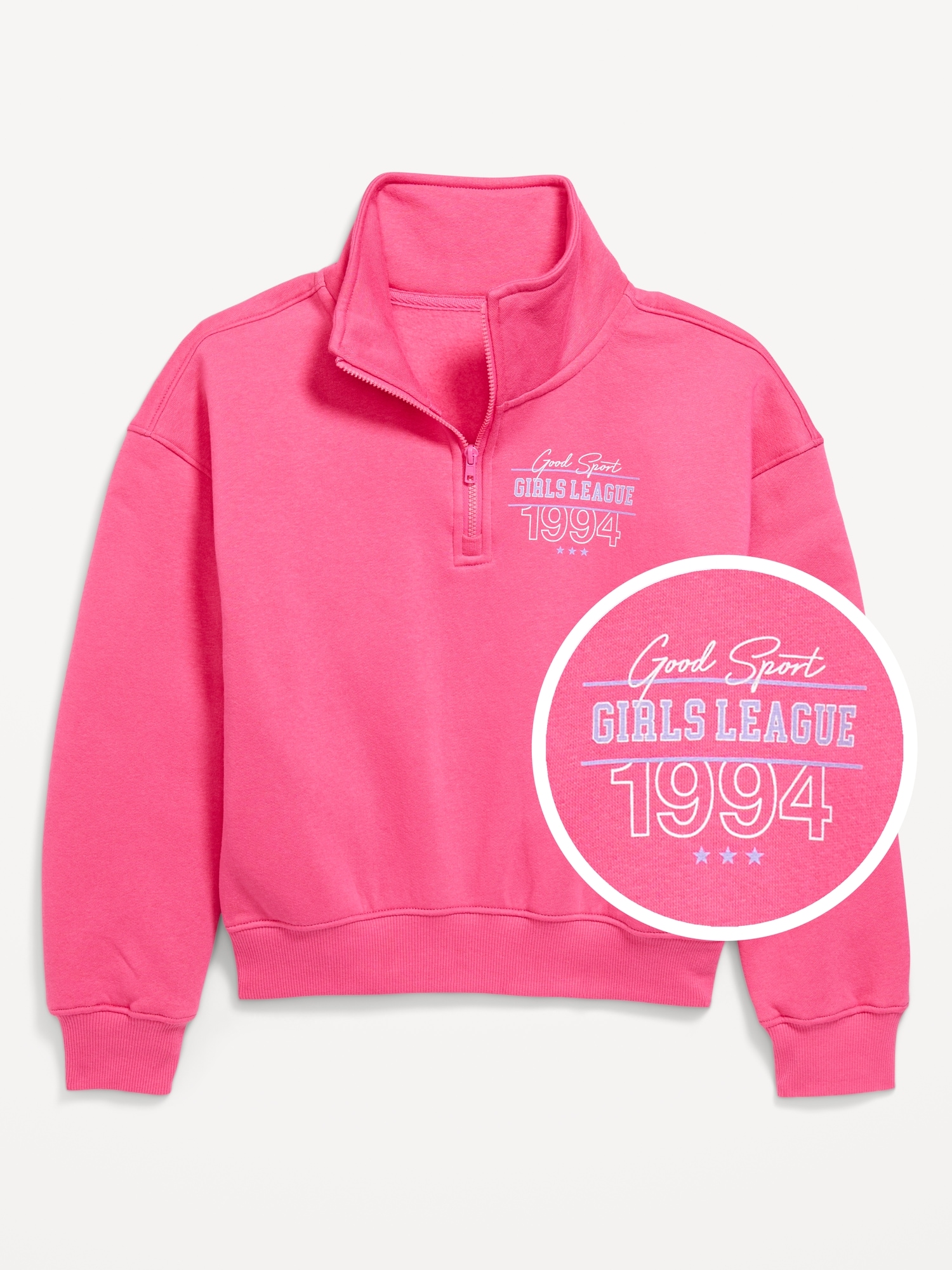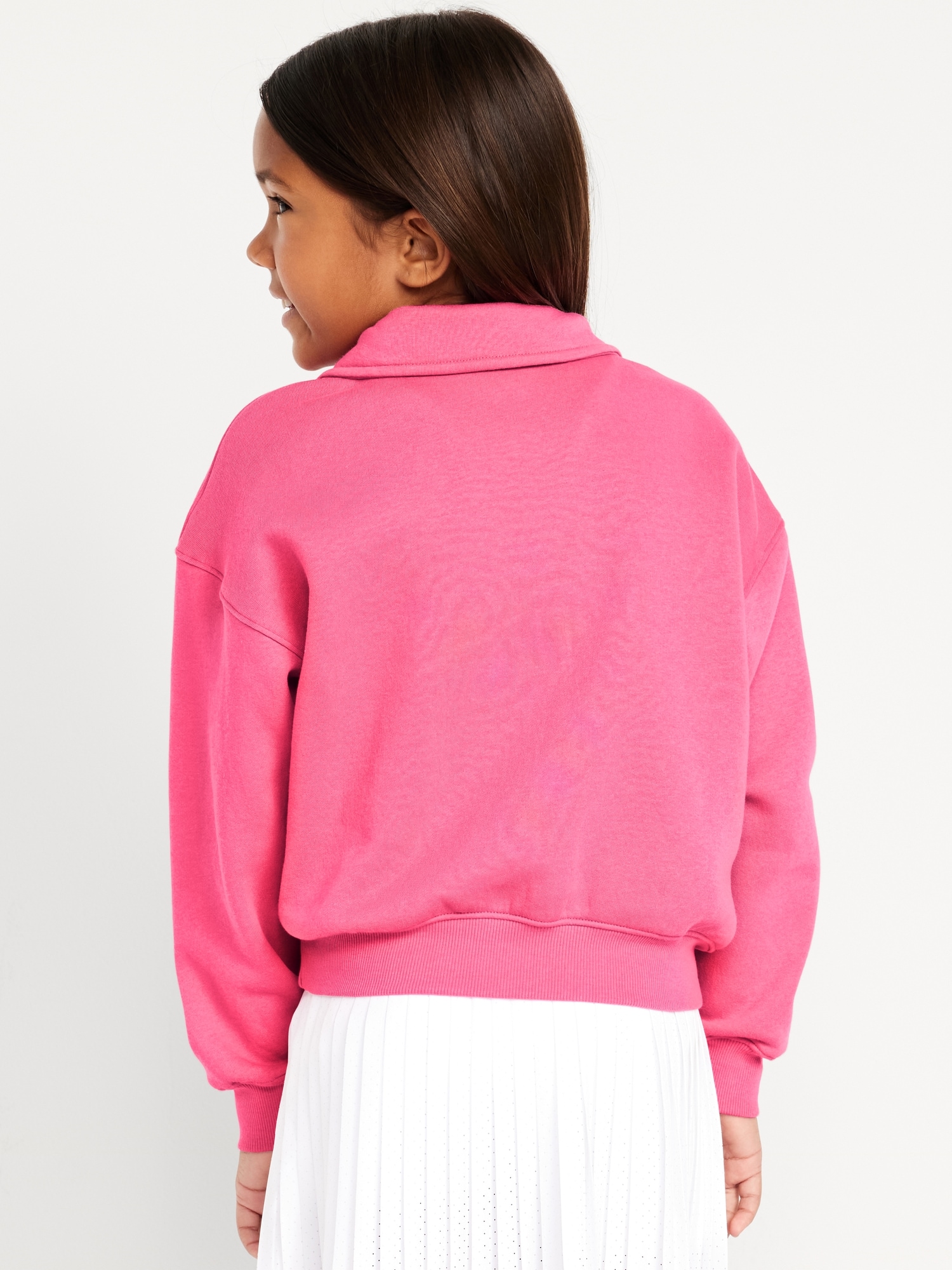 Oversized Quarter-Zip Sweatshirt for Girls: spread collar, long sleeves, drop shoulders, quarter zip front, banded hem, all-over pattern or graphic, #759538