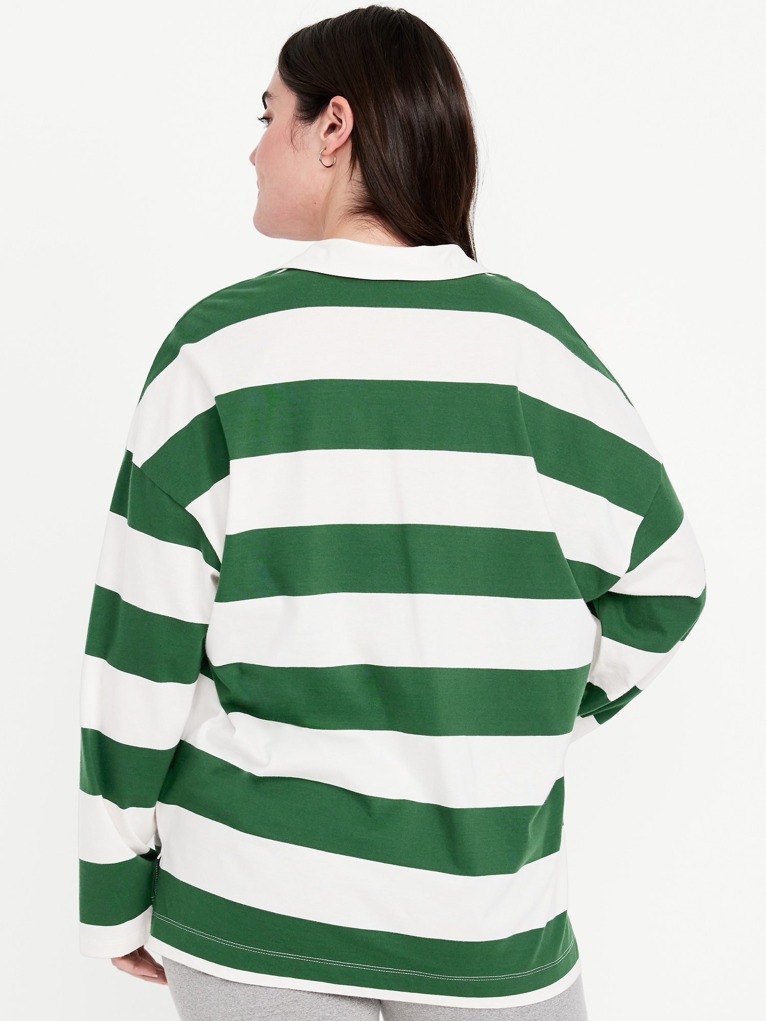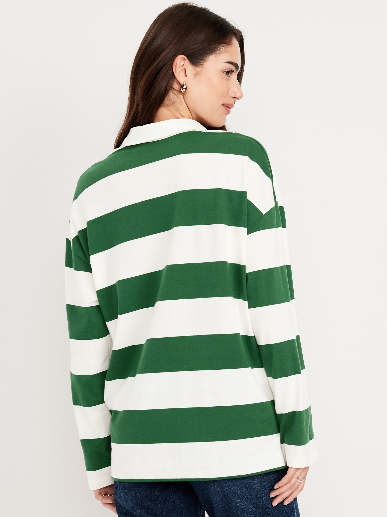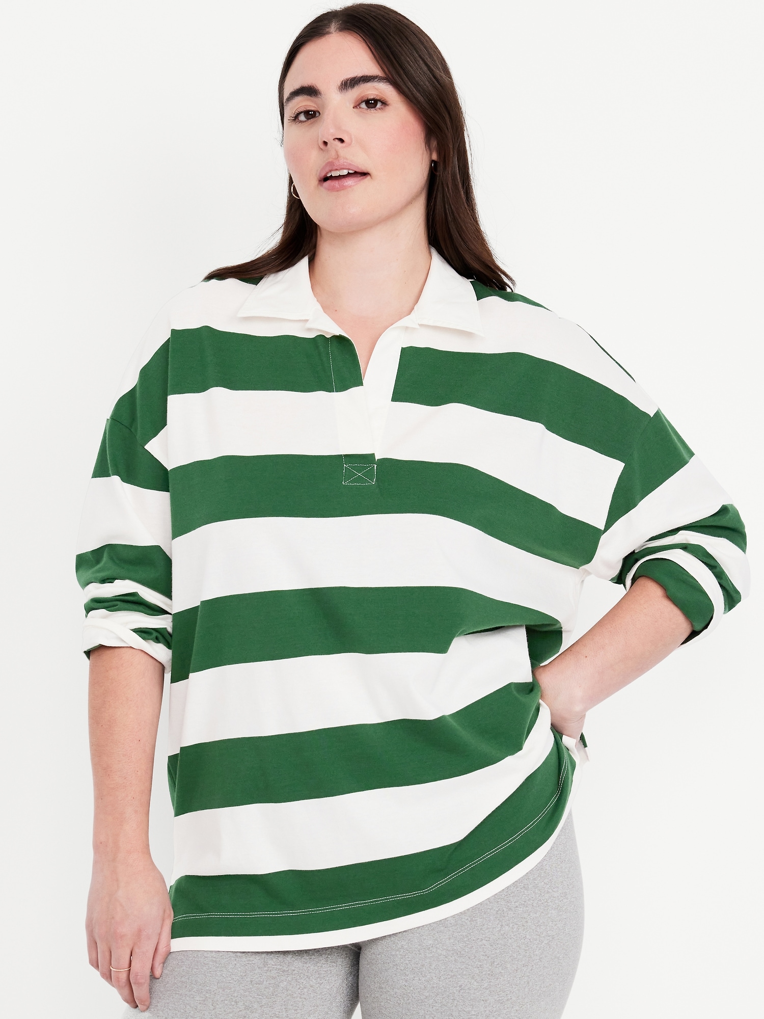 Oversized Rugby Polo: spread twill collar, long sleeves, wide contrasting stripes, #764298