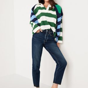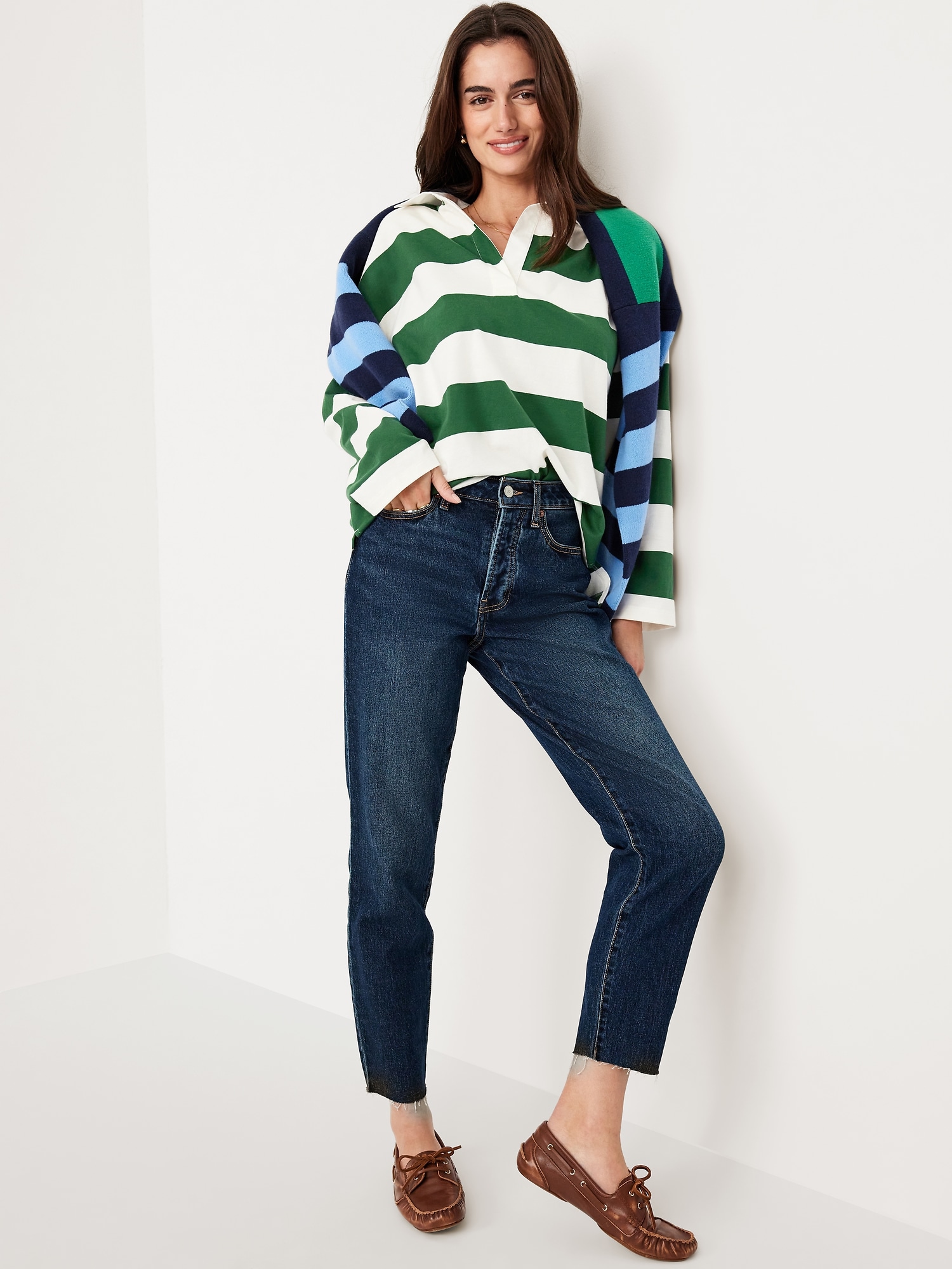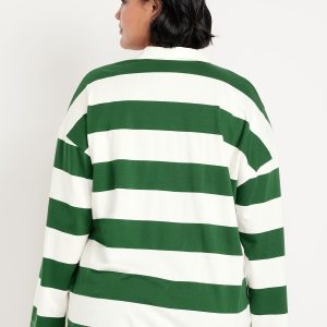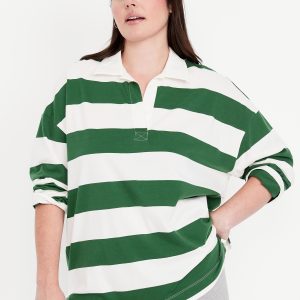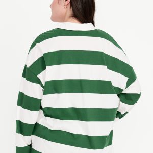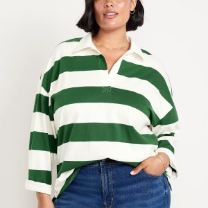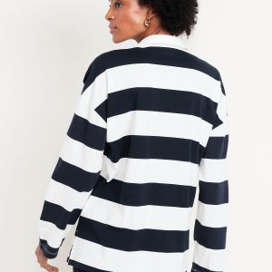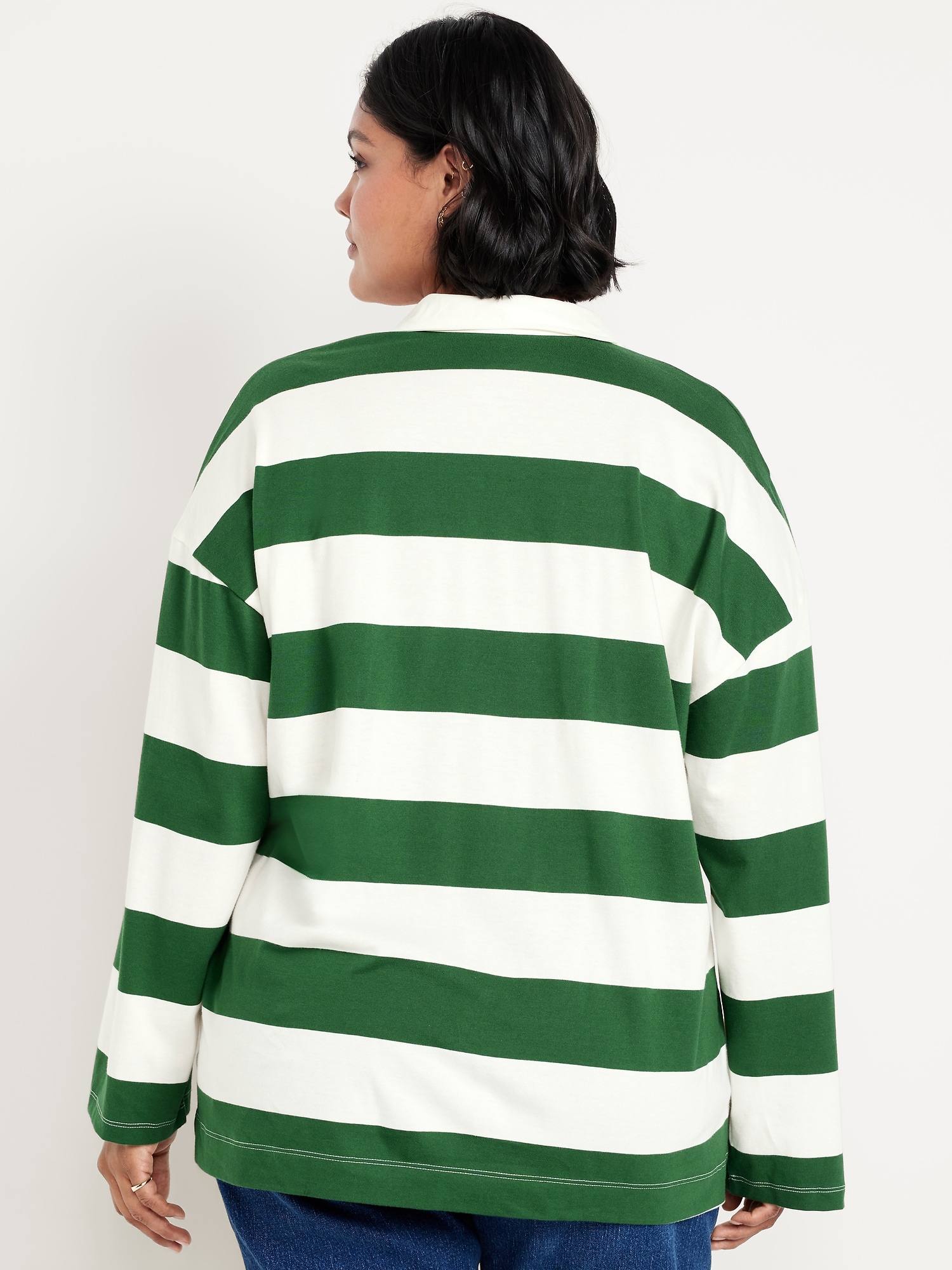 Oversized Rugby Polo: spread twill collar, long sleeves, wide contrasting stripes, #764298