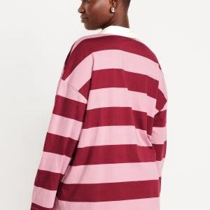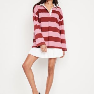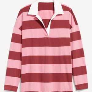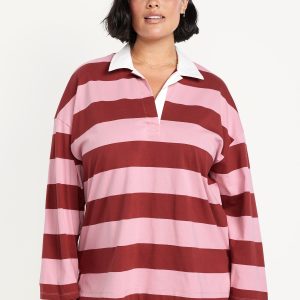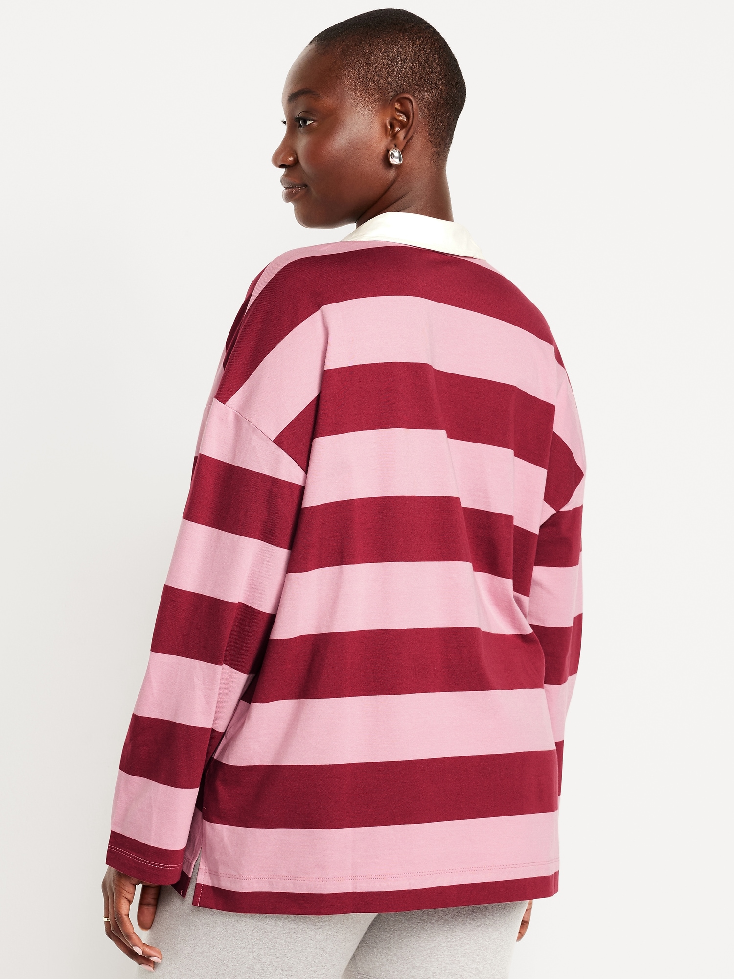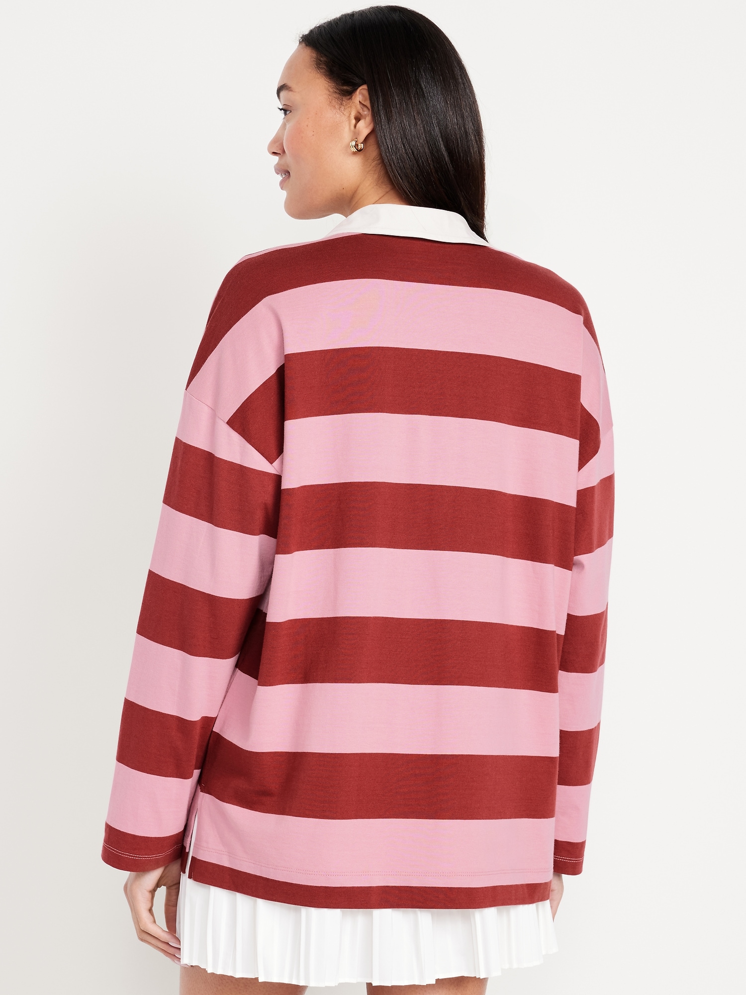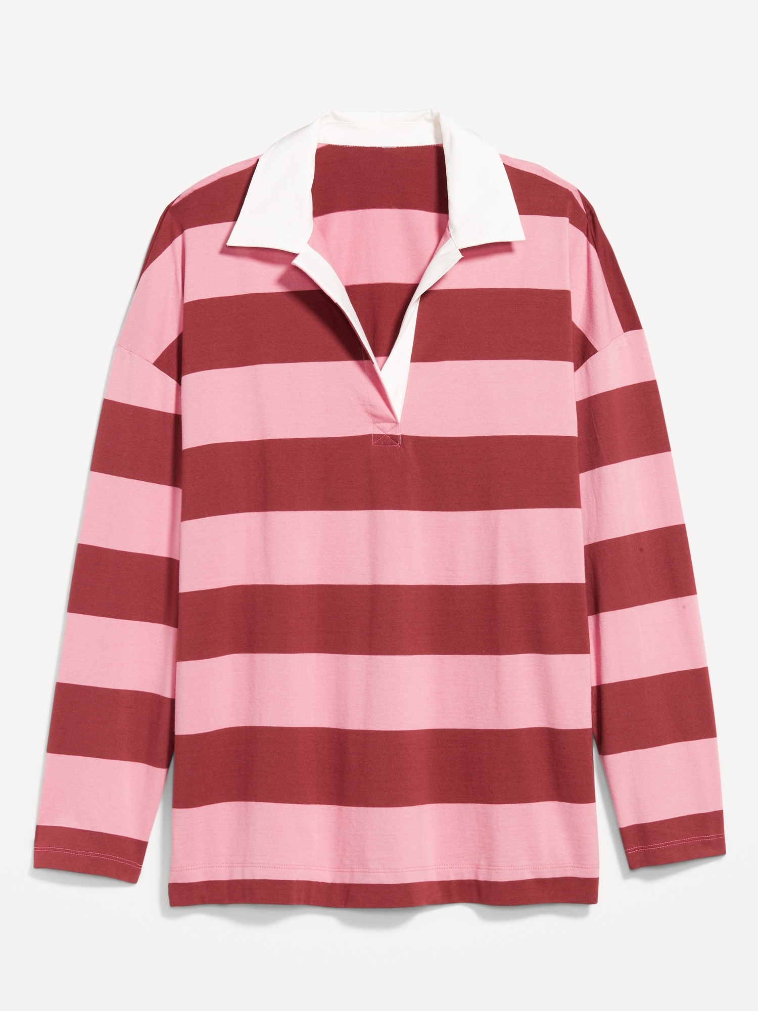 Oversized Rugby Polo: spread twill collar, long sleeves, wide contrasting stripes, #764298
