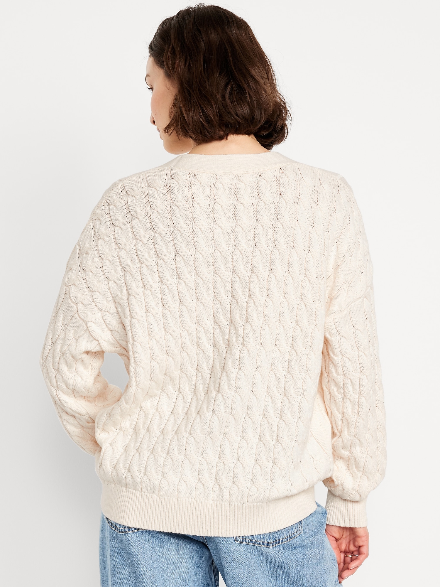 Oversized Slouchy Cable-Knit Cardigan Sweater