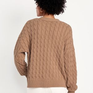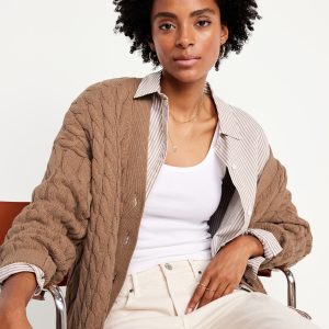 Oversized Slouchy Cable-Knit Cardigan Sweater