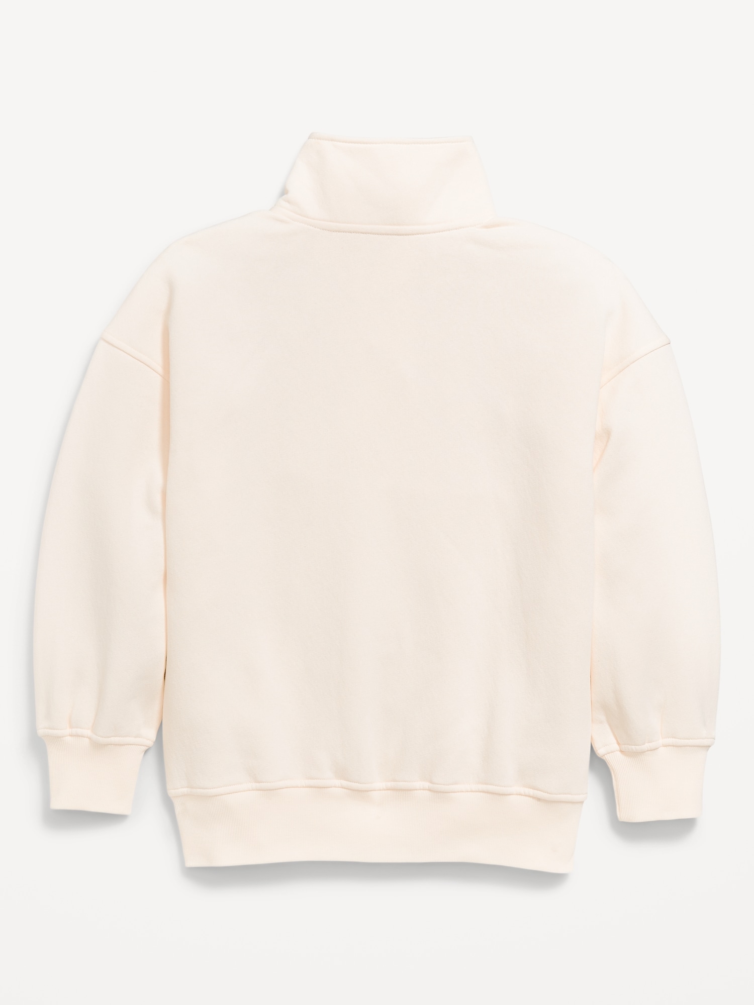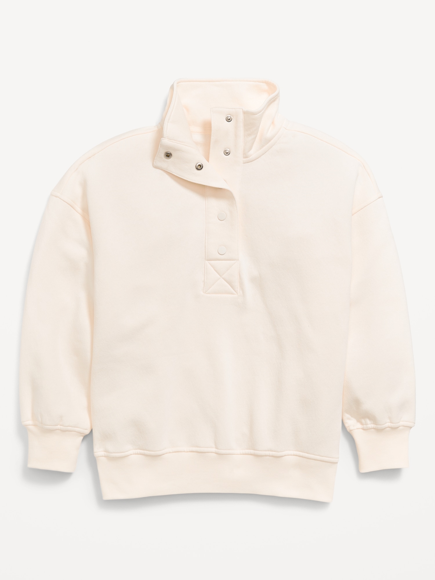 Oversized Snap-Button Sweatshirt for Girls: spread collar, half snap-button placket, long sleeves, drop shoulders, #798209