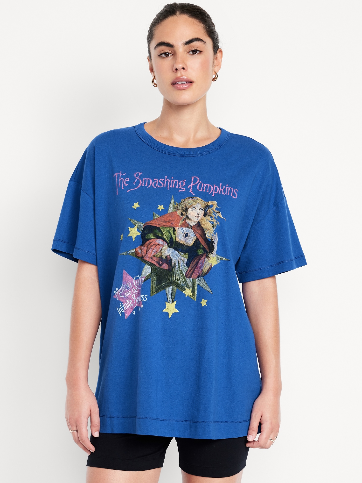 Oversized The Smashing Pumpkins⢠T-Shirt: available exclusively online and at outlet stores, rib-knit crew neck, short drop-shoulder sleeves, licensed graphic, vented sides, © 2025 The Smashing Pumpkins All Rights Reserved., #805707