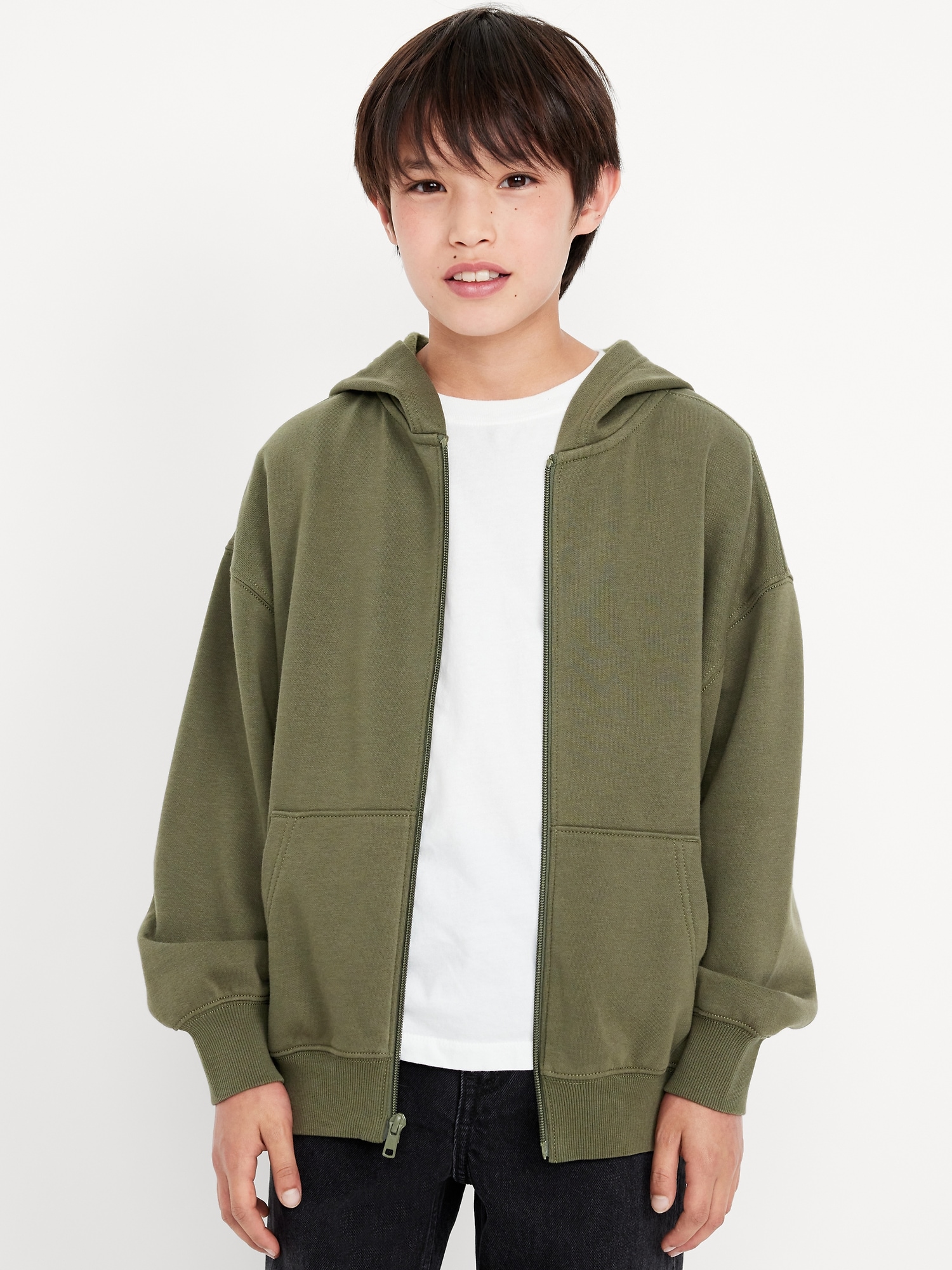 Oversized Zip Hoodie for Boys: Clothes in Common, a new gender-neutral collection for you, for we, for them. Because, we all deserve to look and feel comfortable & confident in our selves…and in our clothes.built-in hood, long sleeves, banded cuffs, full-length zipper, hand-warming scoop pockets, banded hem, #692498