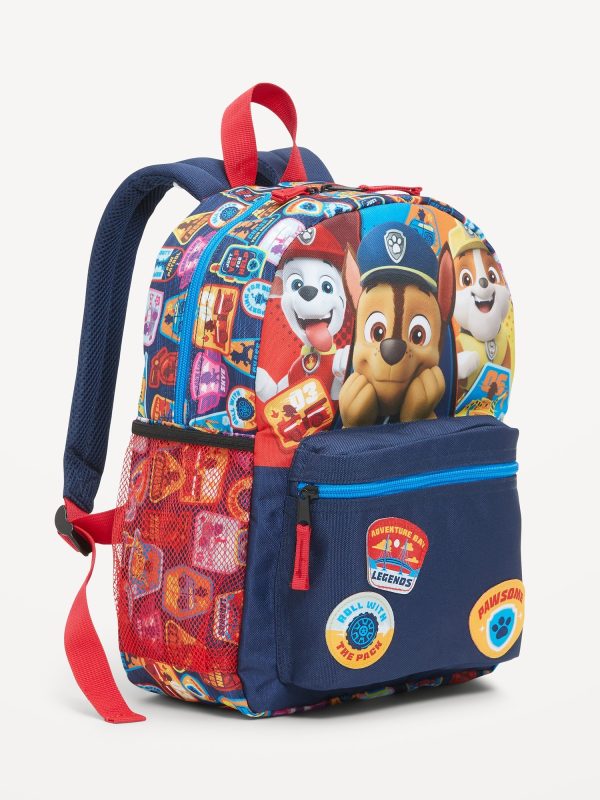 Paw Patrol™ Canvas Backpack for Toddler & Baby: zip-top closure, top handle, shoulder straps, exterior zippered pouch compartment, durable stretchy mesh side pouch, licensed graphic, © & ™ Spin Master Ltd., #762296