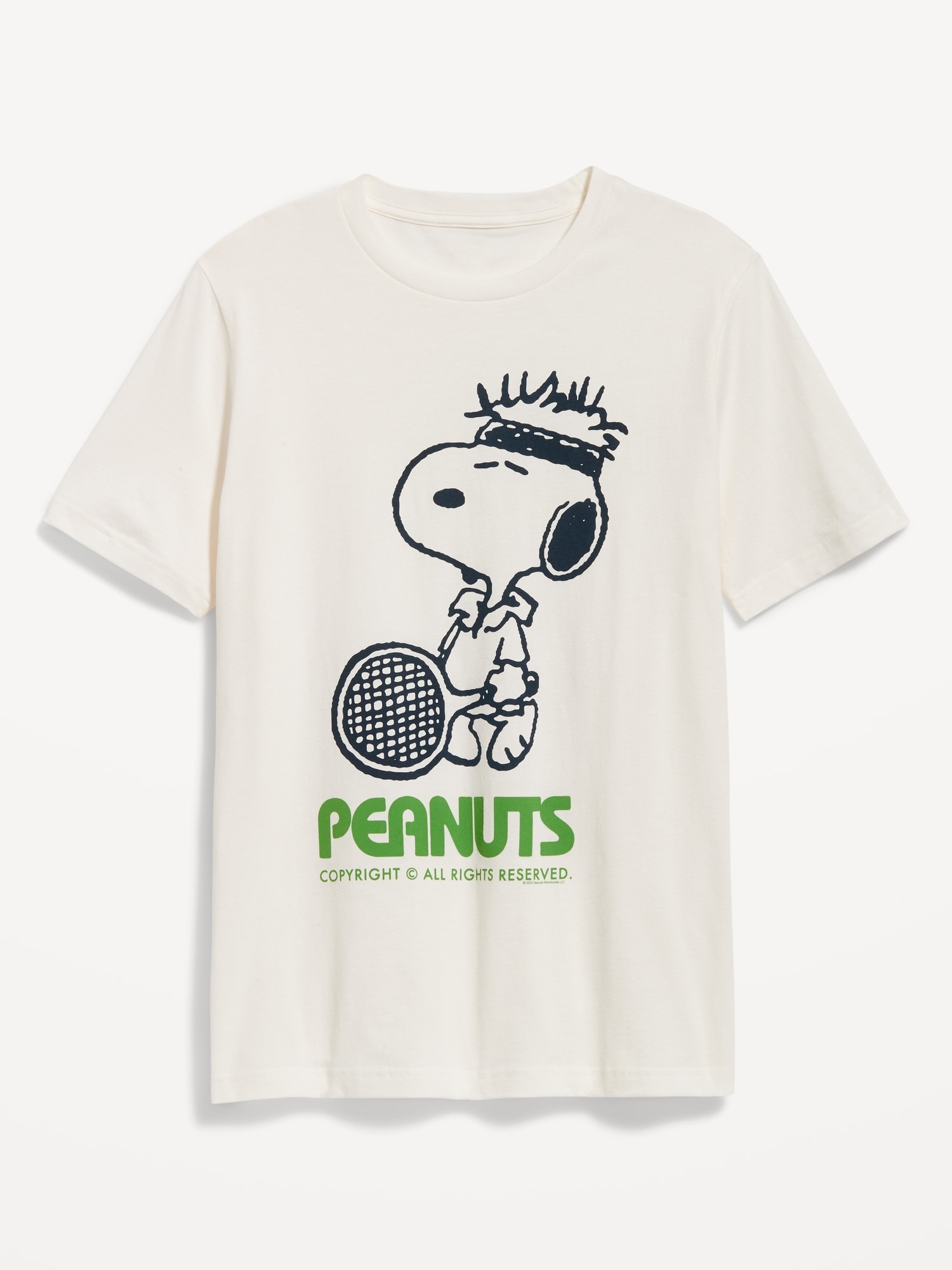 Peanuts™ Snoopy T-Shirt: rib-knit crew neck, short sleeves, licensed tennis graphic, © 2025 Peanuts Worldwide LLC, #751690