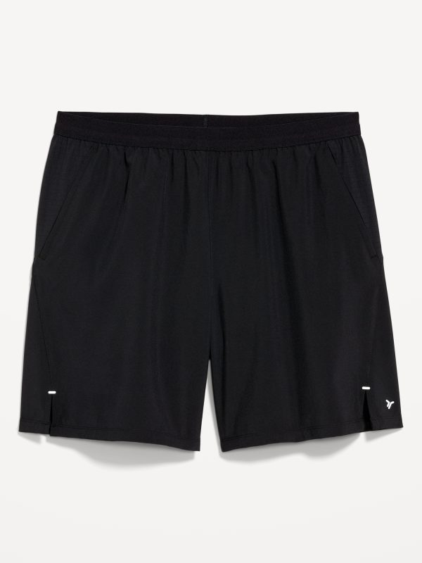 Performance Vent Run Shorts — 7-inch inseam: elastic-drawstring waistband, hidden back pocket at waist, diagonal hip pockets, vented sides, built-in briefs, breathable, quick dry, four-way stretch, #693436
