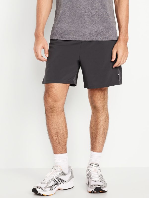 Performance Vent Run Shorts — 7-inch inseam: elastic-drawstring waistband, hidden back pocket at waist, diagonal hip pockets, vented sides, built-in briefs, breathable, quick dry, four-way stretch, #693436
